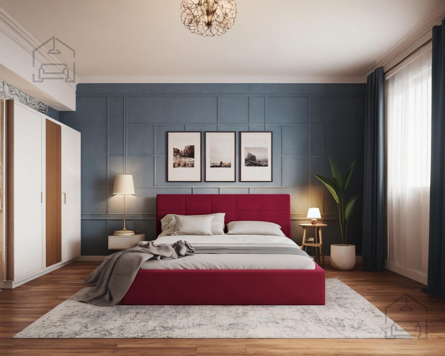 Zaradi svojih dimenzij se postelja Rino lepo prilega večini spalnic srednje ali večje velikosti. Tapeciran okvir omogoča varno uporabo tudi v manjših prostorih, saj mehki robovi preprečujejo udarce, medtem ko prešito vzglavje vizualno razširi prostor in ga naredi toplejšega.