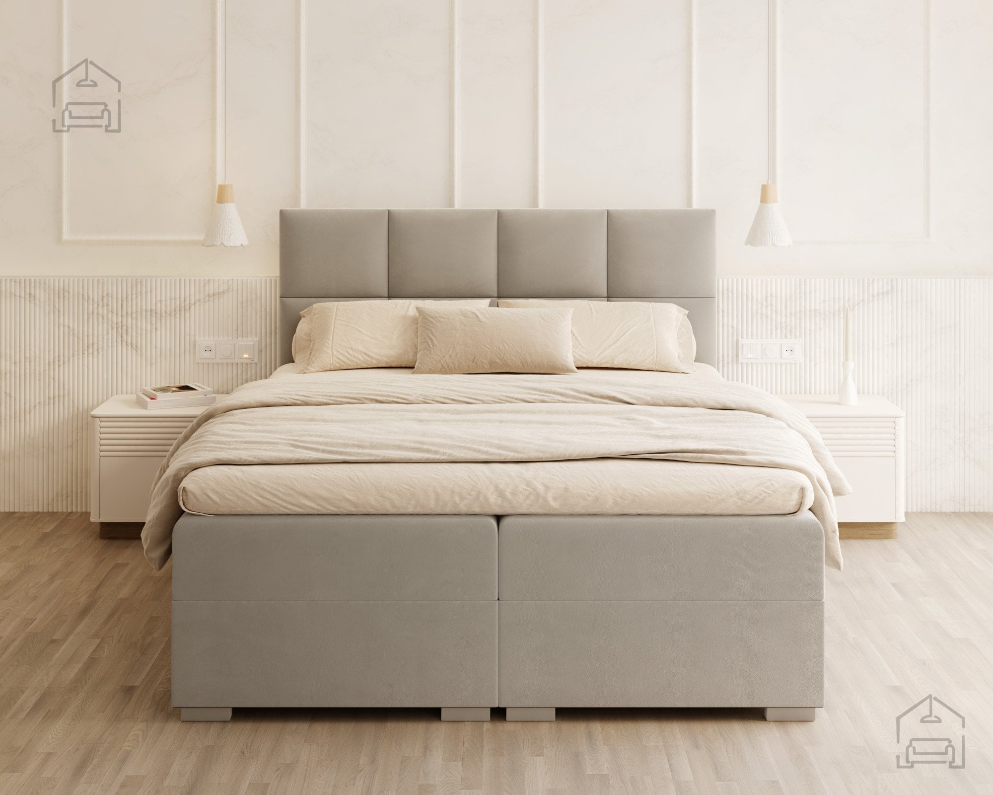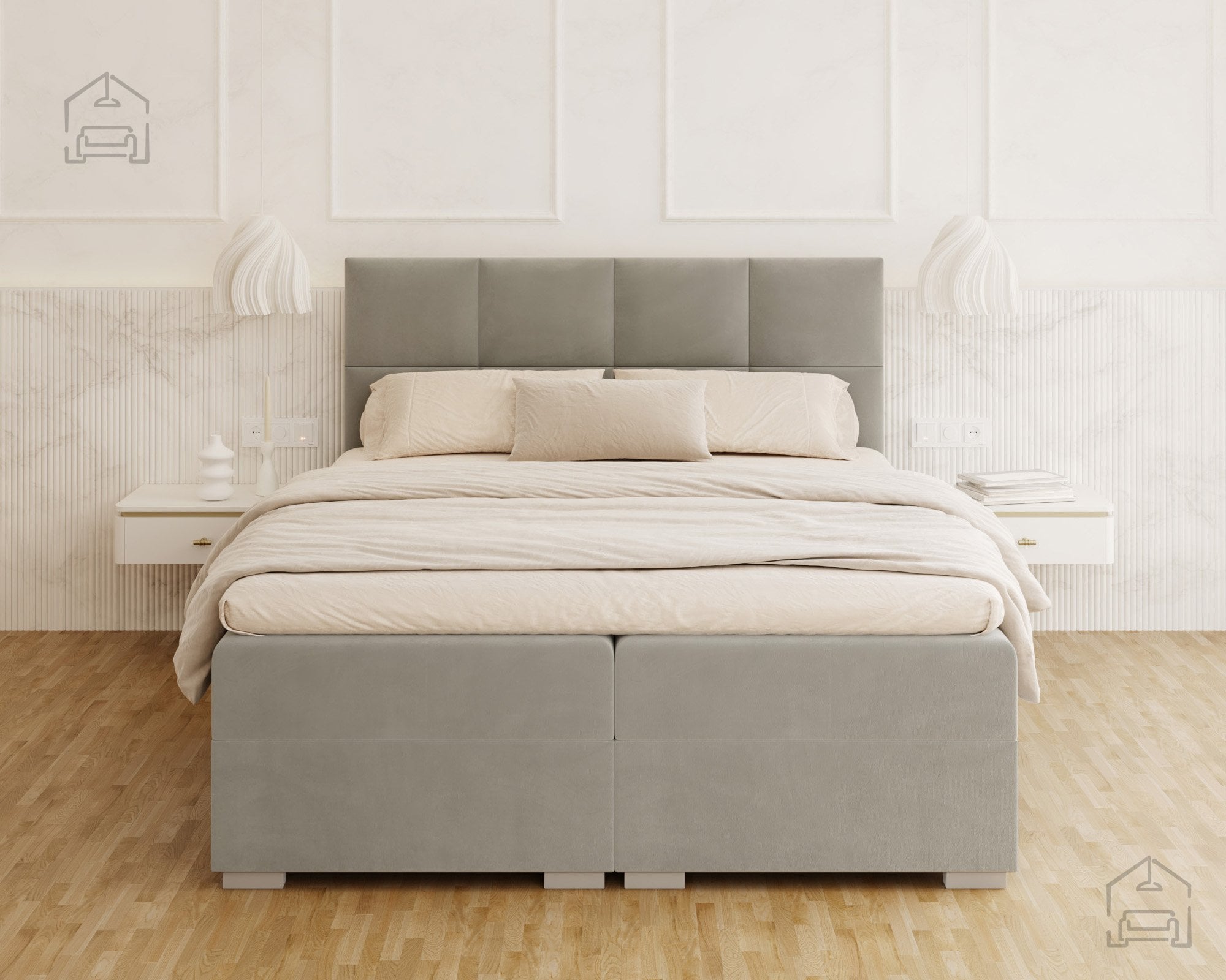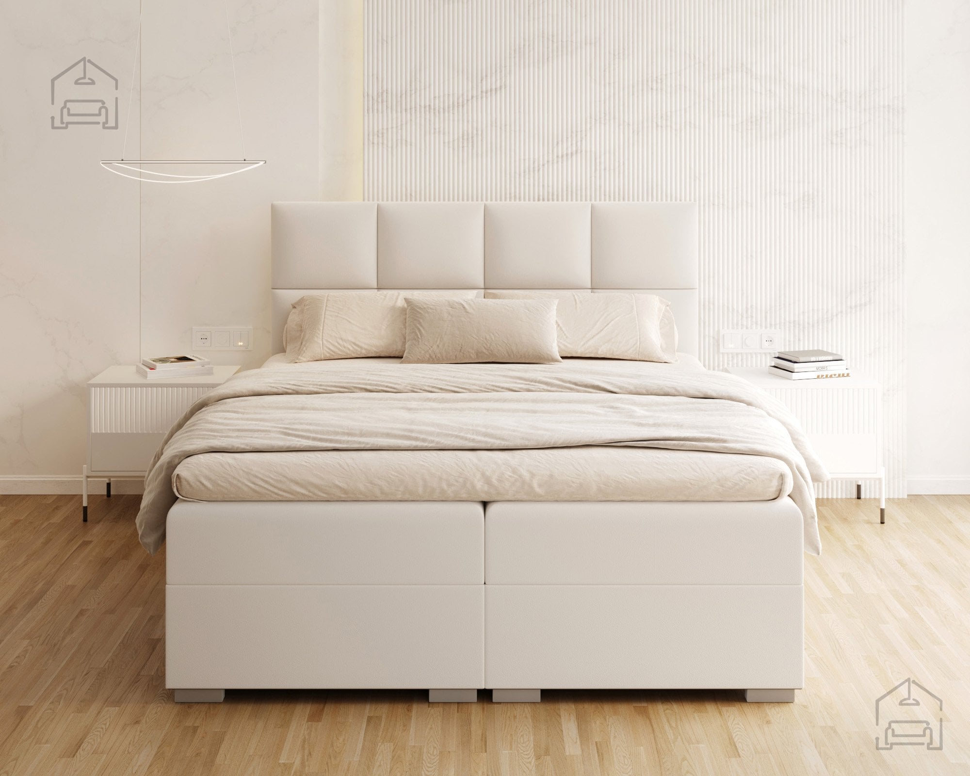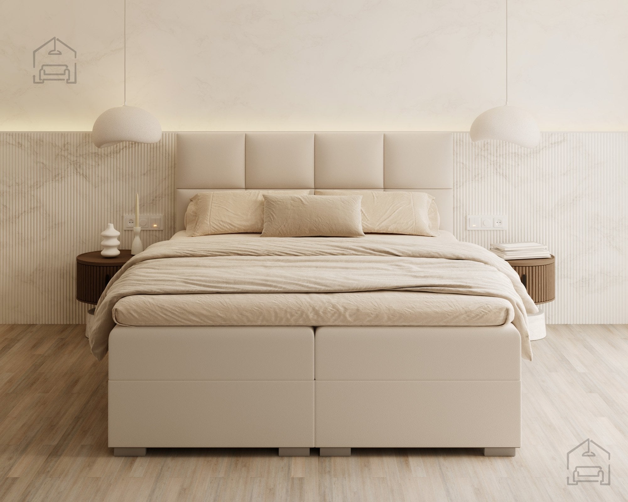 Vodoravno prešito vzglavje in sprednji del postelje ustvarjata vizualno ravnovesje in občutek urejenosti. Zaradi natančno izdelanih šivov in mehko oblazinjenih črt postelja izžareva sodoben značaj, ki se lepo ujema z različnimi notranjimi slogi – od minimalističnega do klasičnega. Na voljo je v več barvnih različicah in tkaninah, zato jo lahko enostavno prilagodite obstoječi opremi vaše spalnice. Ne glede na izbrano barvo vodoravne prešite linije poudarijo strukturo in dodajo pridih prefinjenosti.