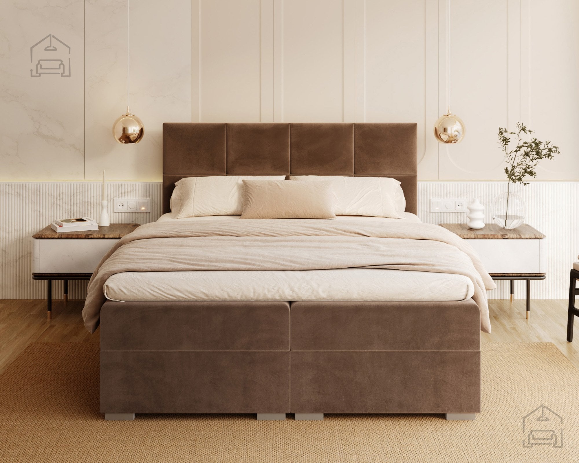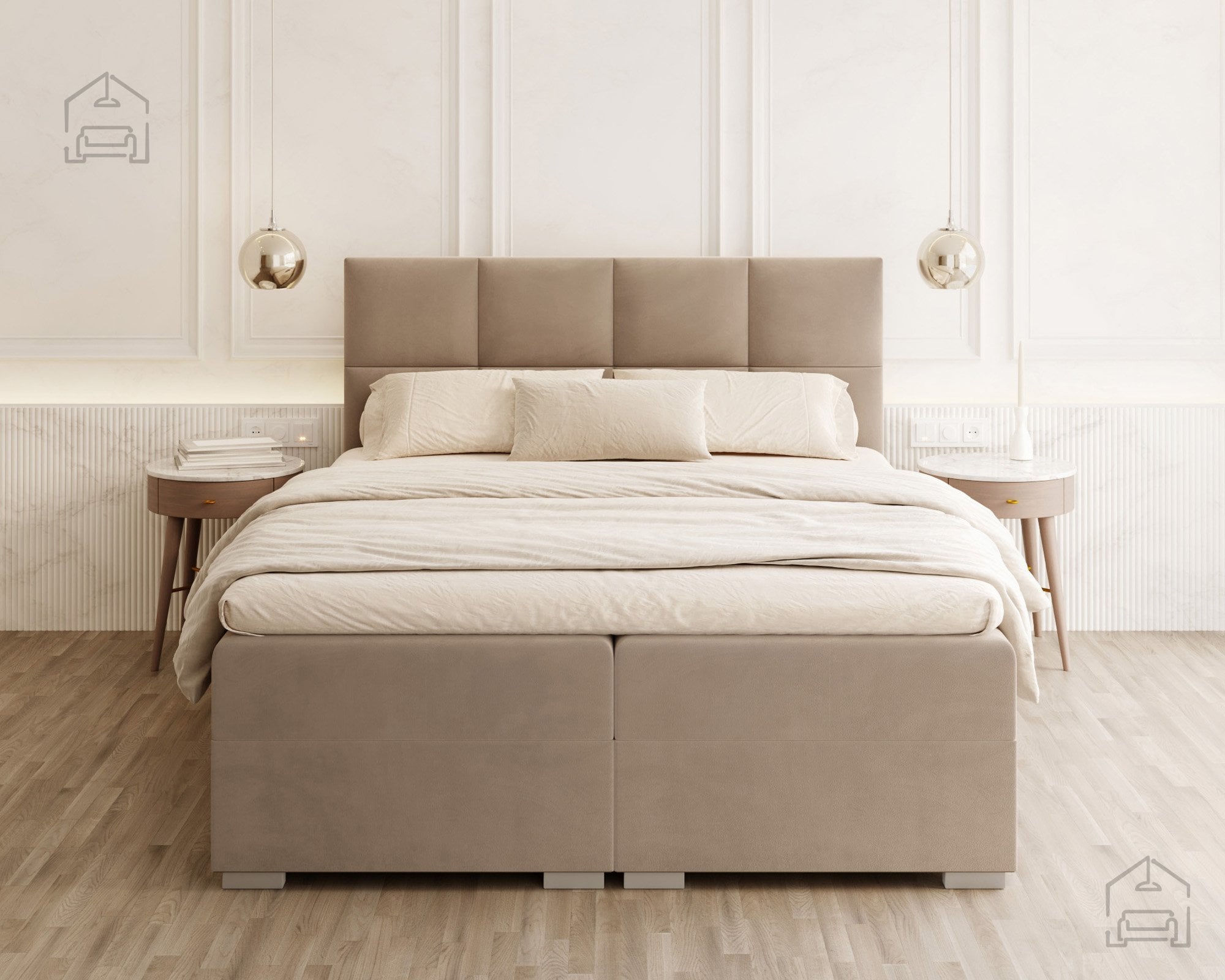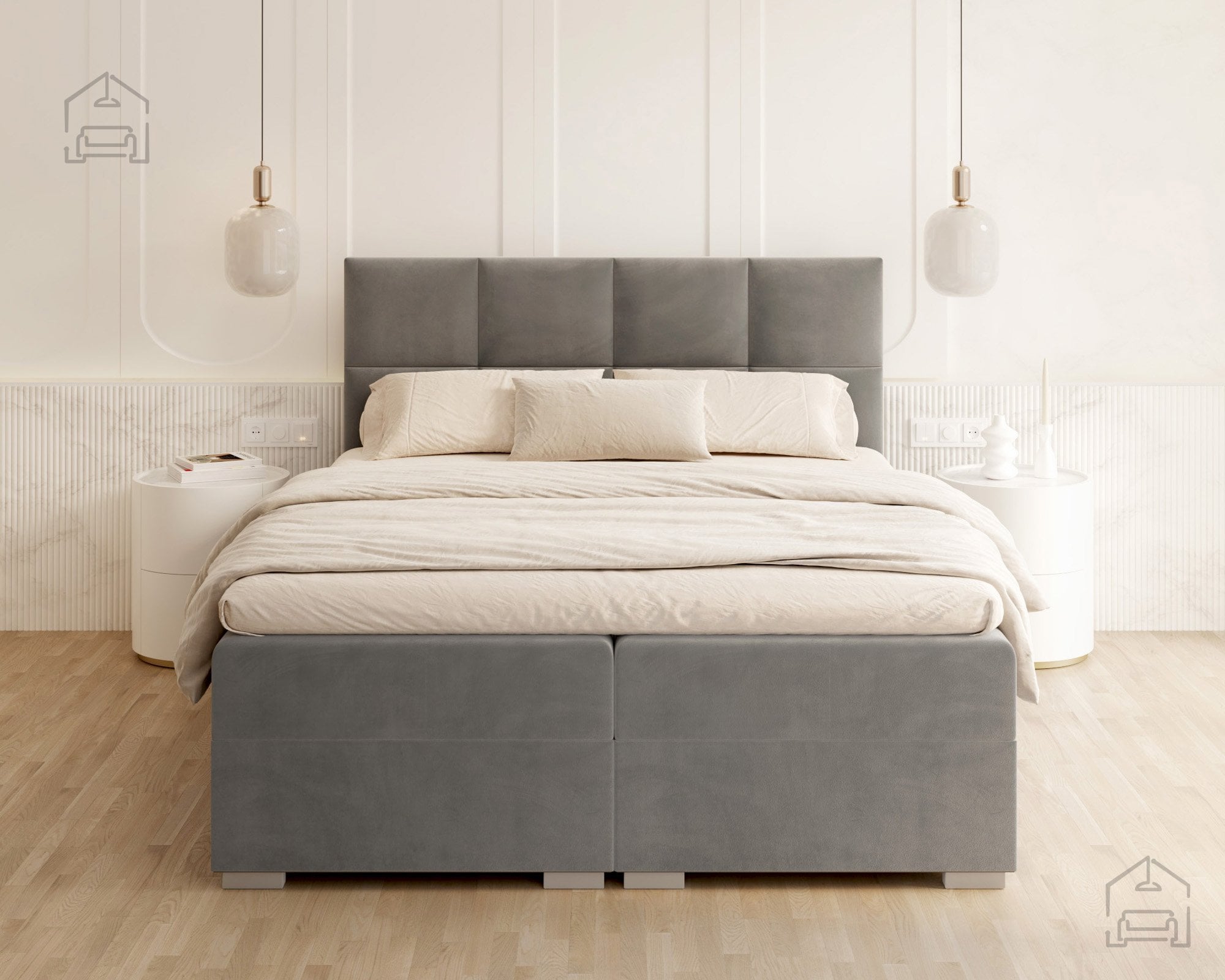 Vodoravno prešito vzglavje in sprednji del postelje ustvarjata vizualno ravnovesje in občutek urejenosti. Zaradi natančno izdelanih šivov in mehko oblazinjenih črt postelja izžareva sodoben značaj, ki se lepo ujema z različnimi notranjimi slogi – od minimalističnega do klasičnega. Na voljo je v več barvnih različicah in tkaninah, zato jo lahko enostavno prilagodite obstoječi opremi vaše spalnice. Ne glede na izbrano barvo vodoravne prešite linije poudarijo strukturo in dodajo pridih prefinjenosti.