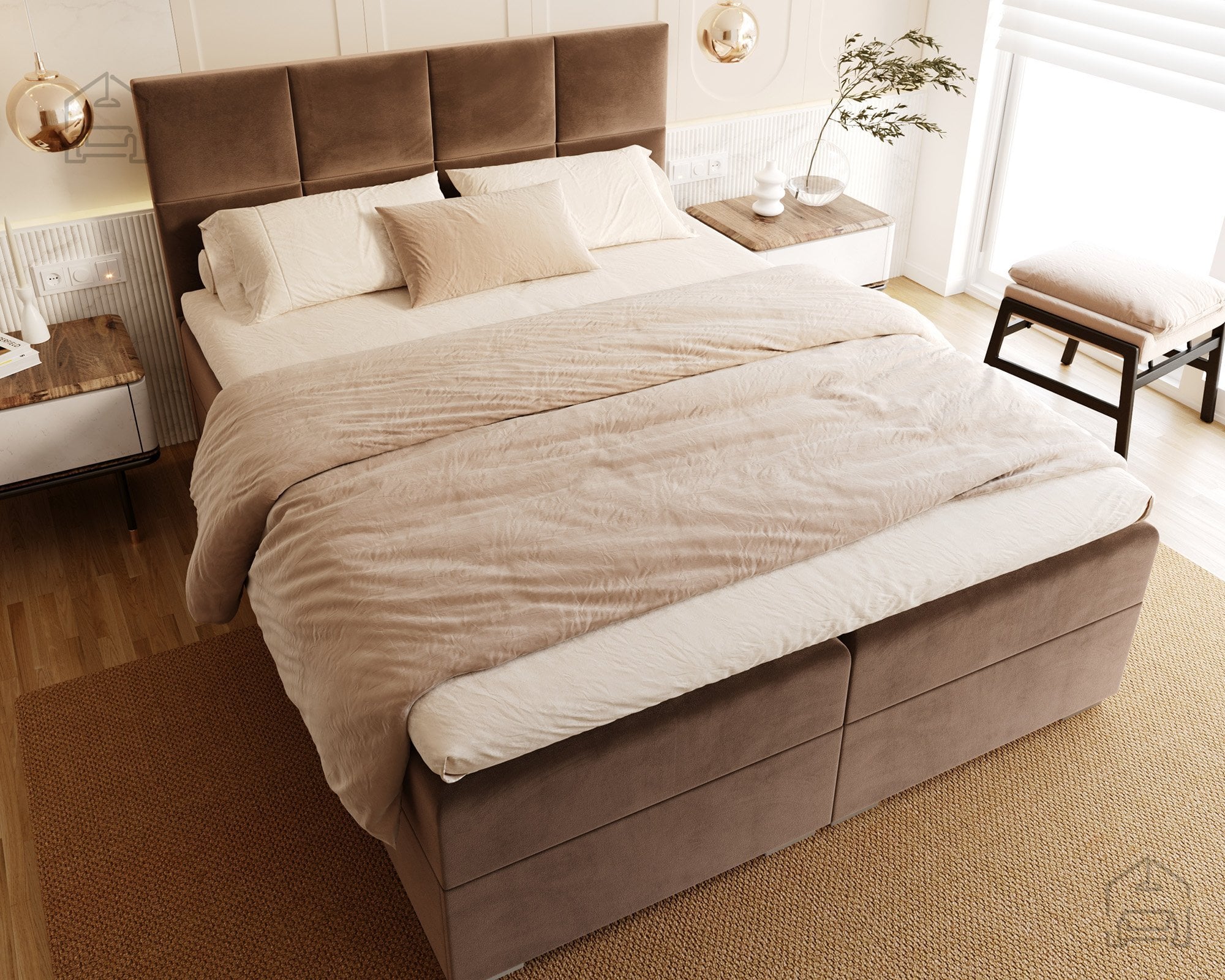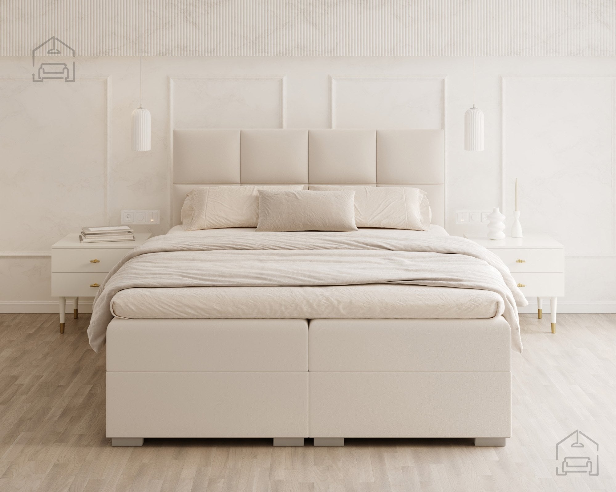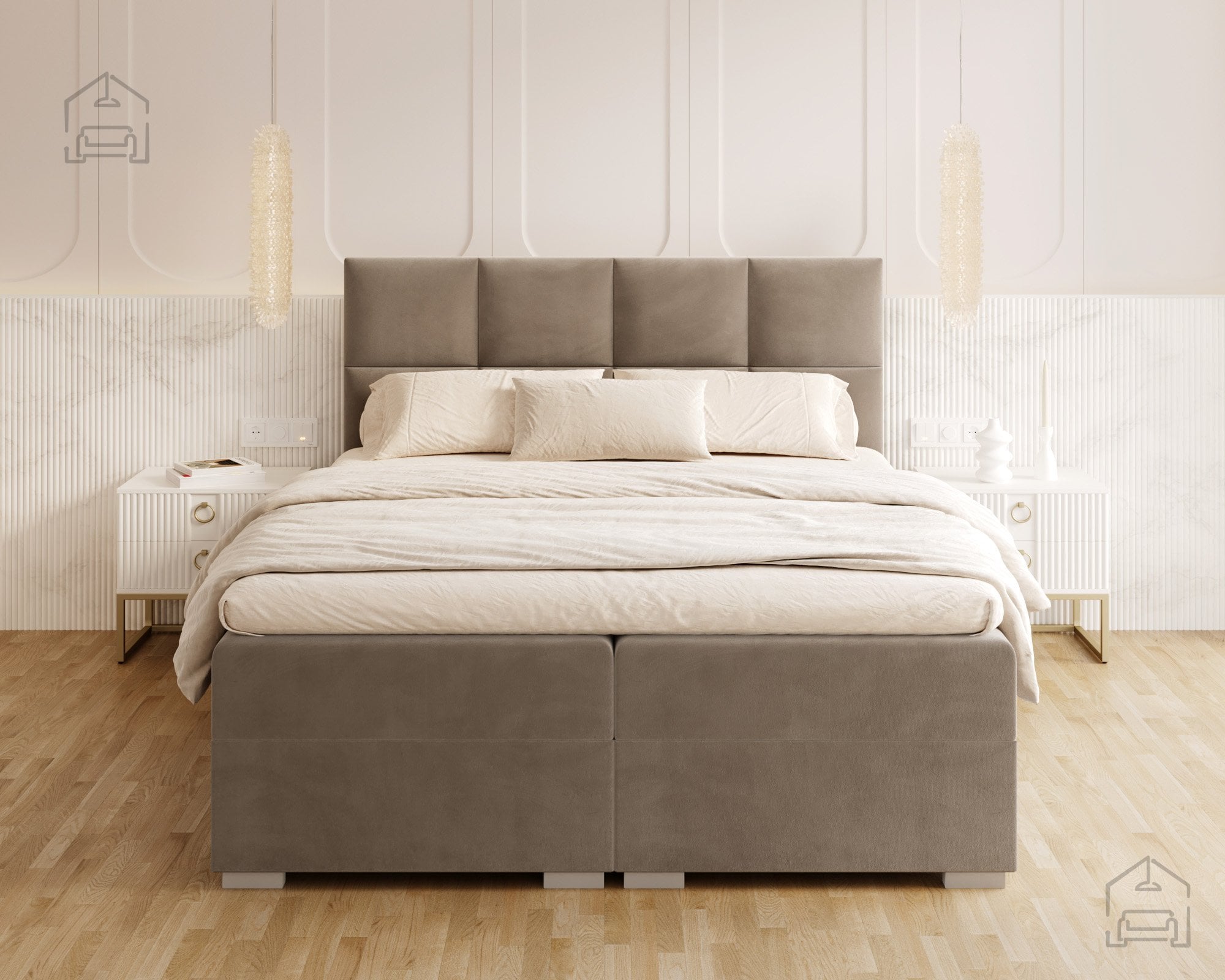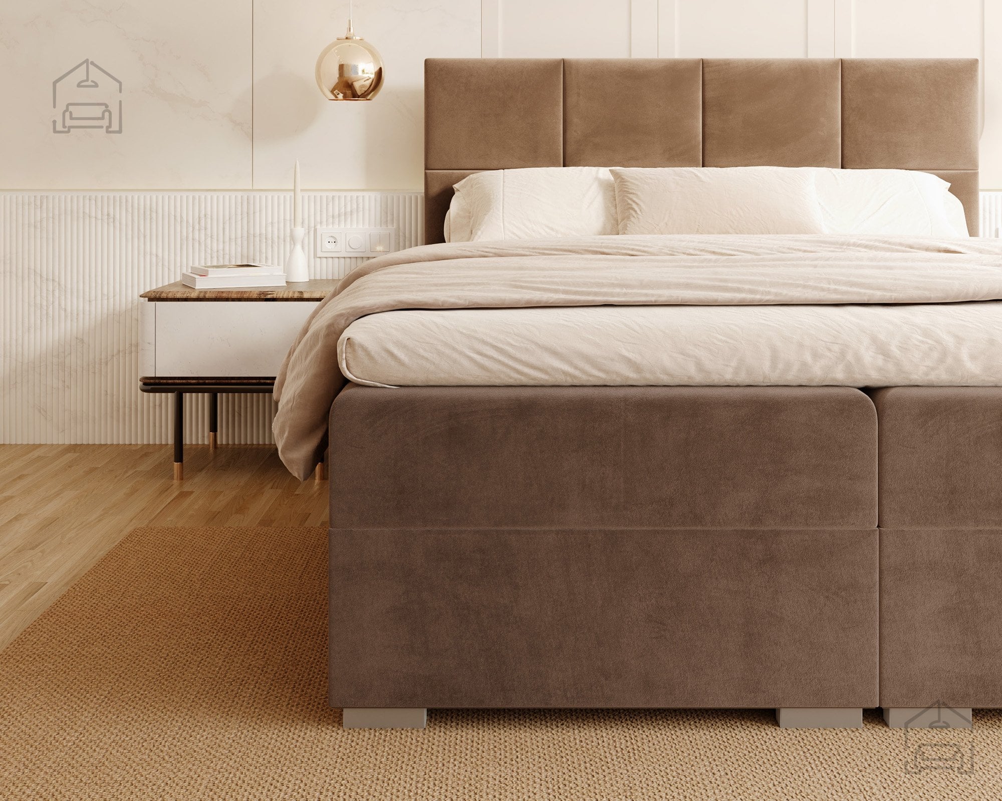 Vodoravno prešito vzglavje in sprednji del postelje ustvarjata vizualno ravnovesje in občutek urejenosti. Zaradi natančno izdelanih šivov in mehko oblazinjenih črt postelja izžareva sodoben značaj, ki se lepo ujema z različnimi notranjimi slogi – od minimalističnega do klasičnega. Na voljo je v več barvnih različicah in tkaninah, zato jo lahko enostavno prilagodite obstoječi opremi vaše spalnice. Ne glede na izbrano barvo vodoravne prešite linije poudarijo strukturo in dodajo pridih prefinjenosti.