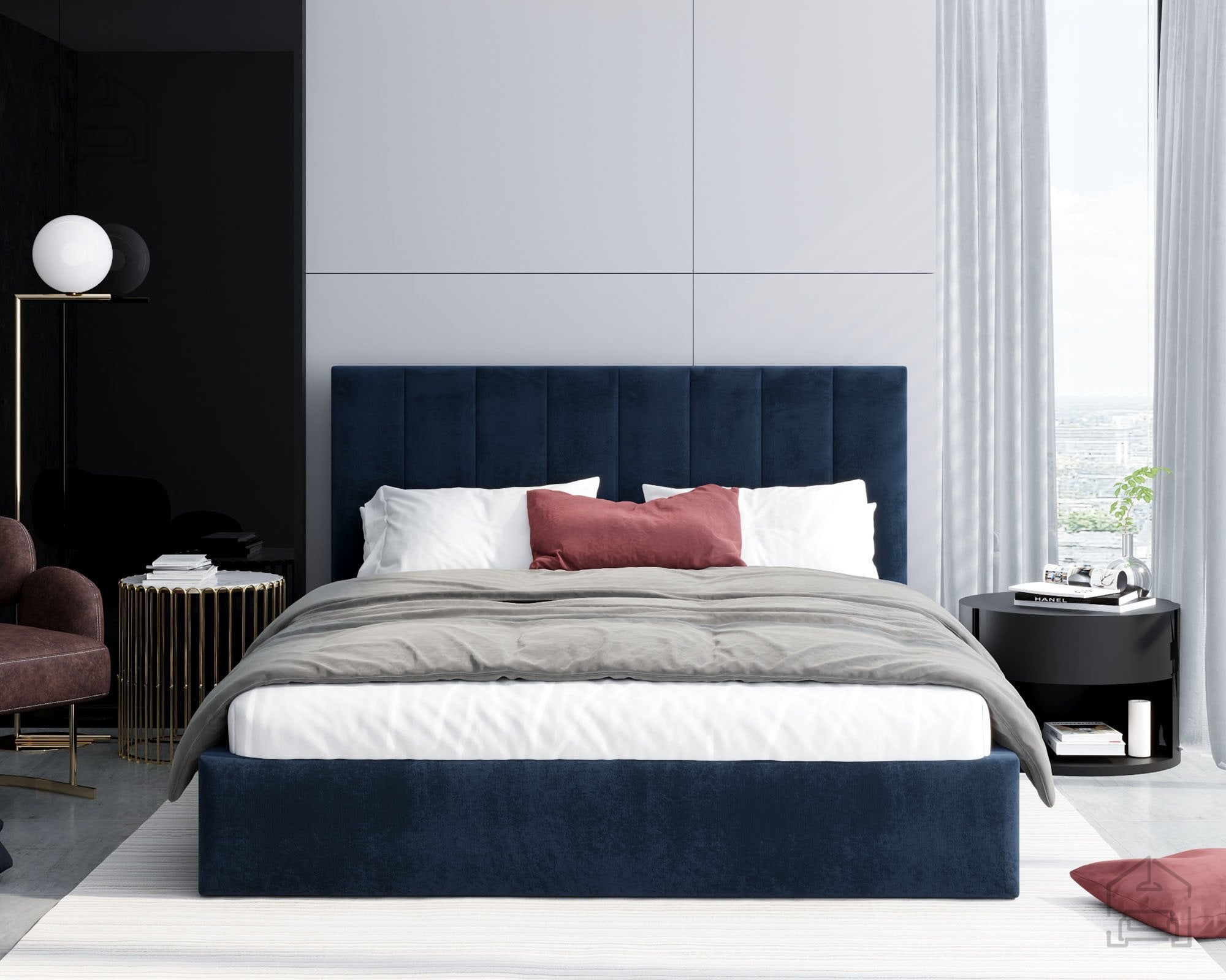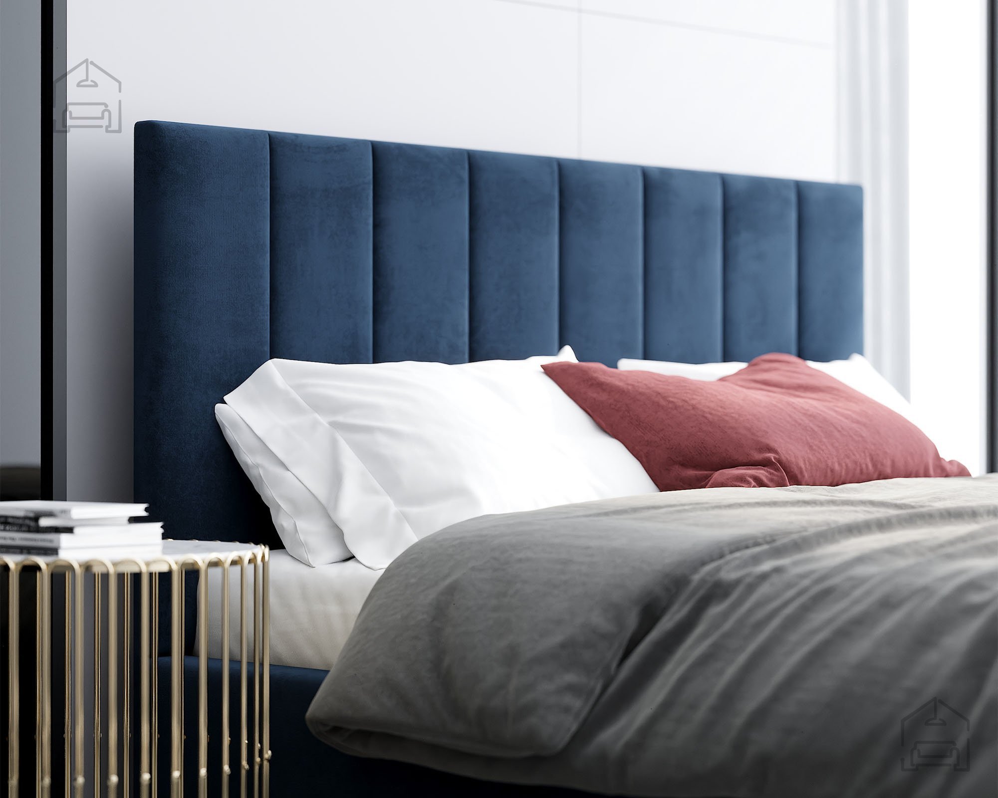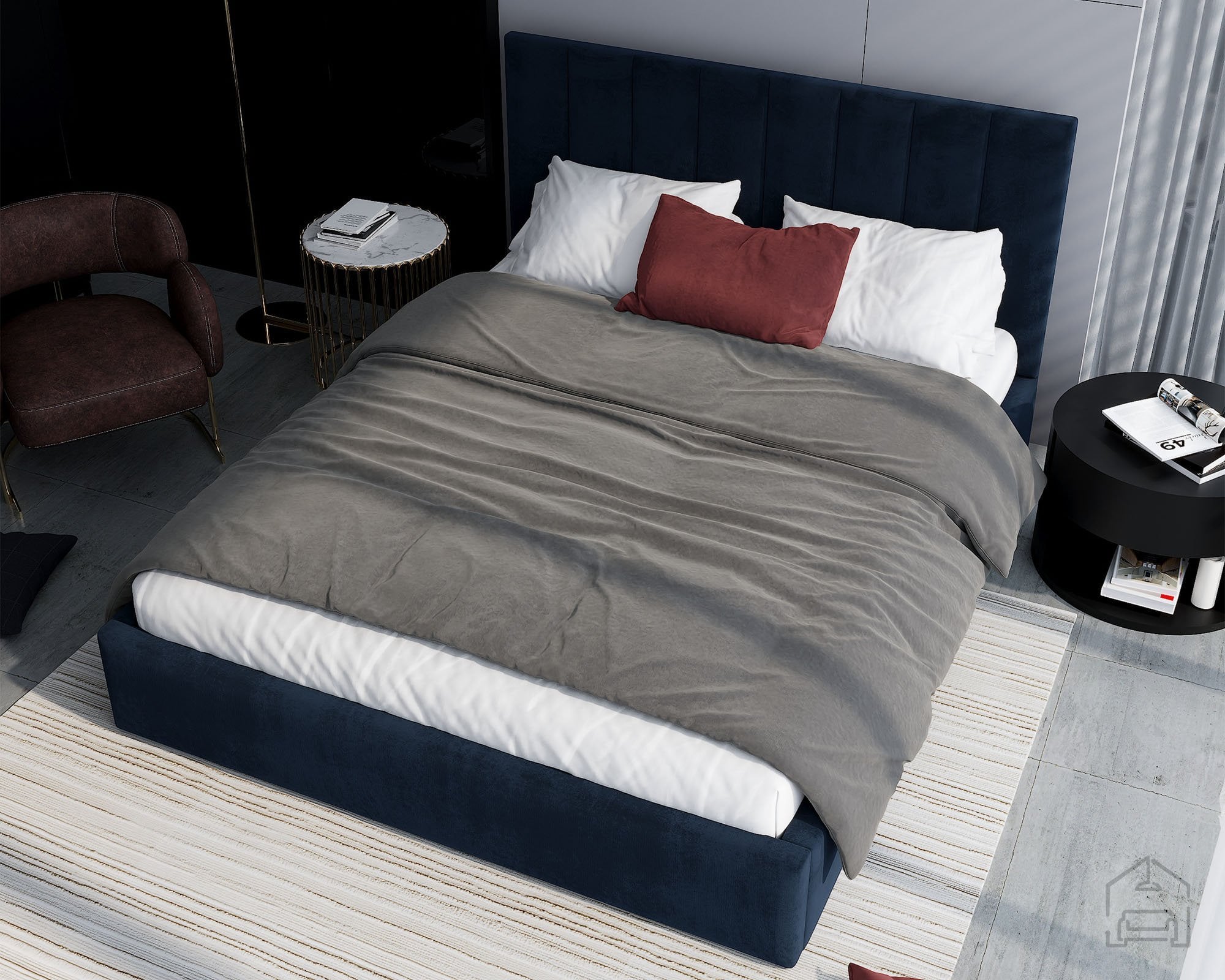 Okvir postelje Justin je v celoti tapeciran, kar prostoru doda občutek topline in mehkobe. Na sliki je prikazana tkanina Paris Deep Blue, ki s svojo globoko modro barvo poudarja sodobno eleganco in se lepo ujema z različnimi stili notranje opreme. Postelja je na voljo v več barvah, zato jo je mogoče prilagoditi različnim estetskim željam in barvnim kombinacijam spalnice.