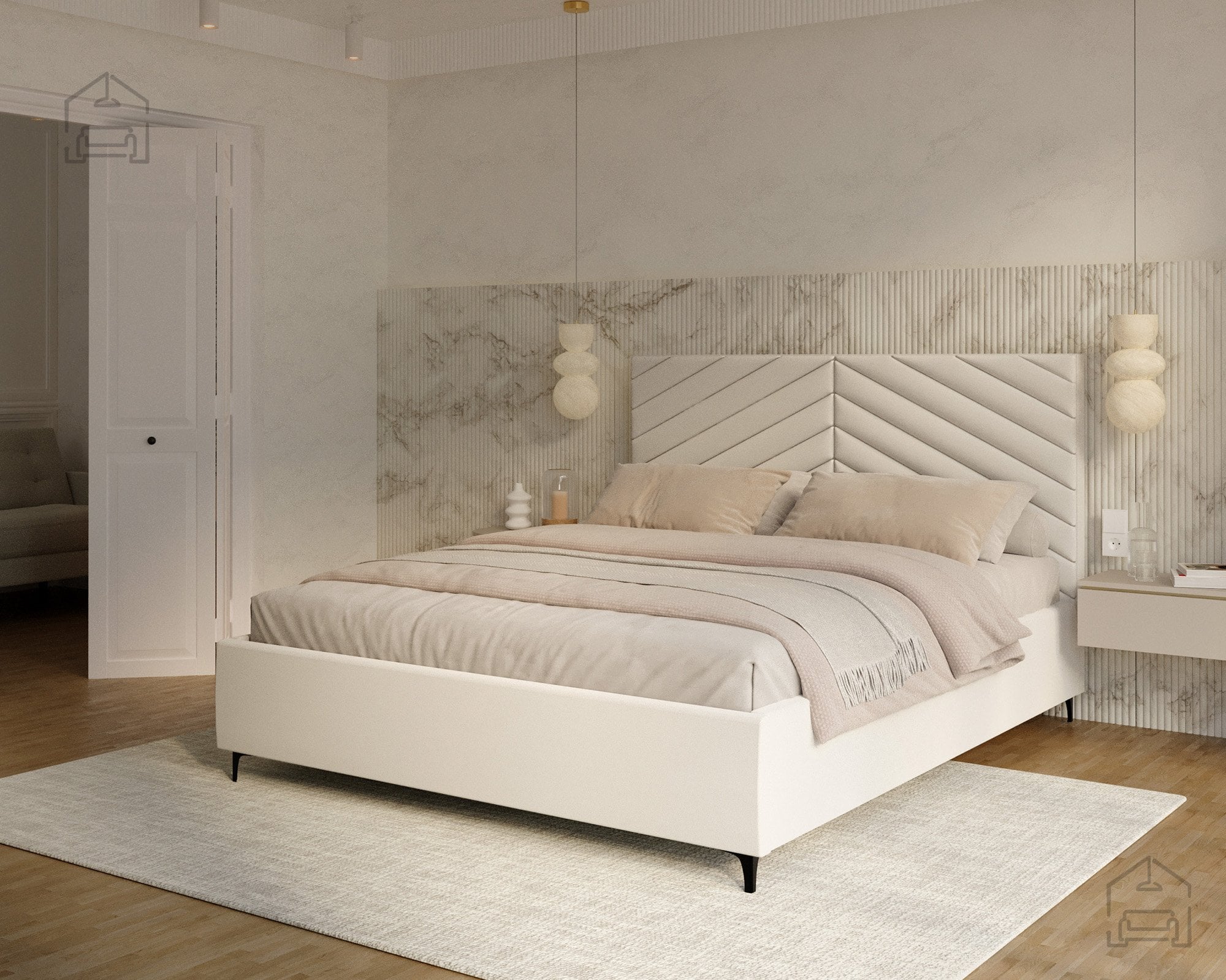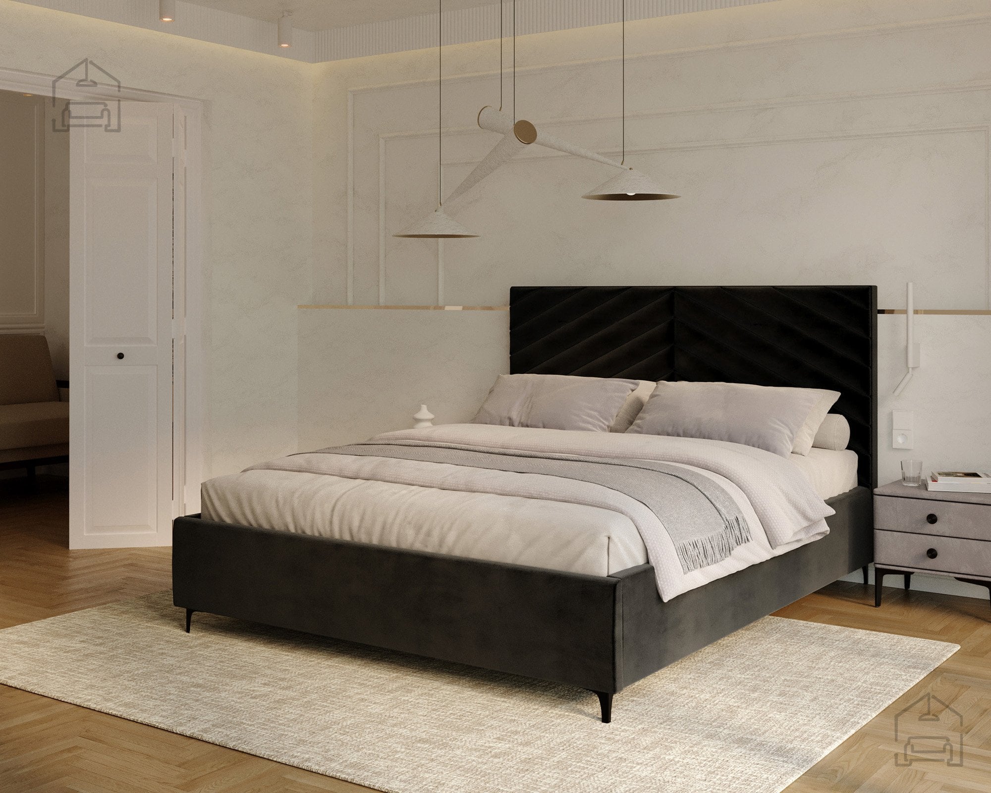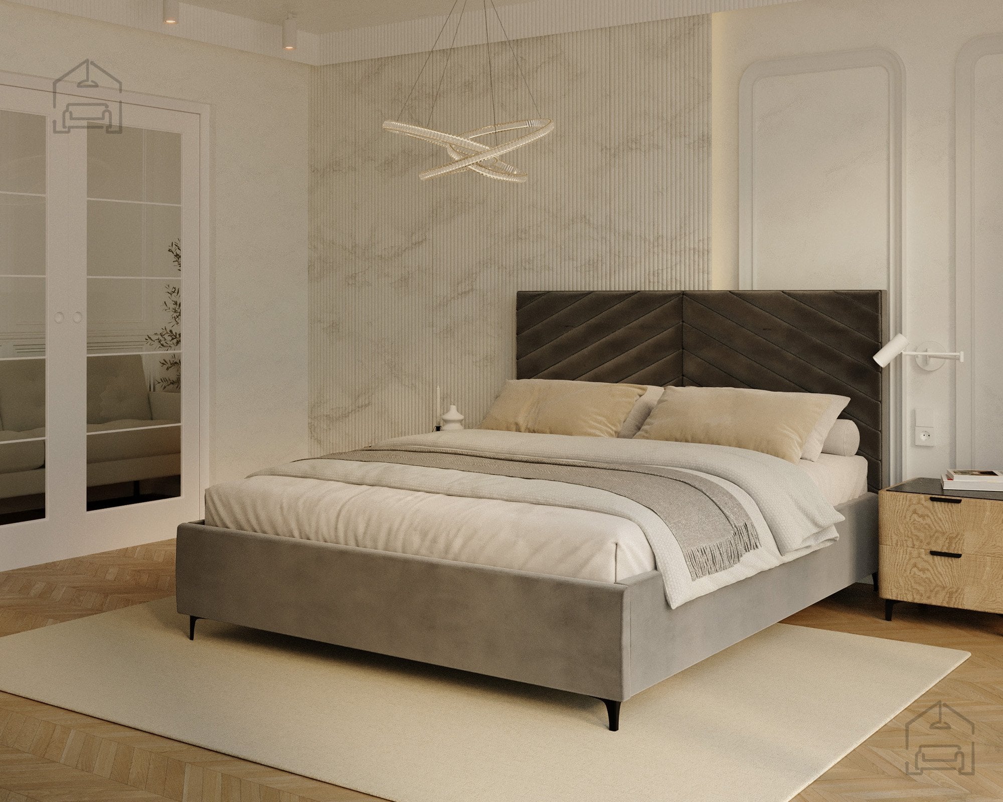 Poleg funkcionalnosti izstopa postelja tudi po oblikovnih detajlih. Široko oblazinjeno vzglavje je eden izmed najbolj prepoznavnih elementov modela. Prisloni se ob steno in omogoča udobno naslanjanje med branjem ali gledanjem televizije. Elegantni šivi in mehka struktura tkanine poudarijo sodoben karakter postelje, ki se lepo ujema z bogatejšimi notranjimi slogi.