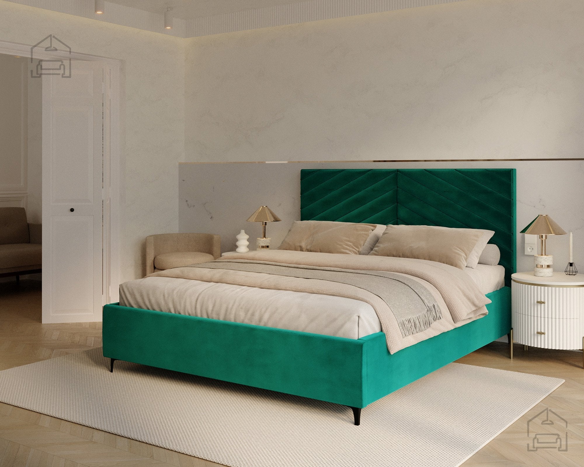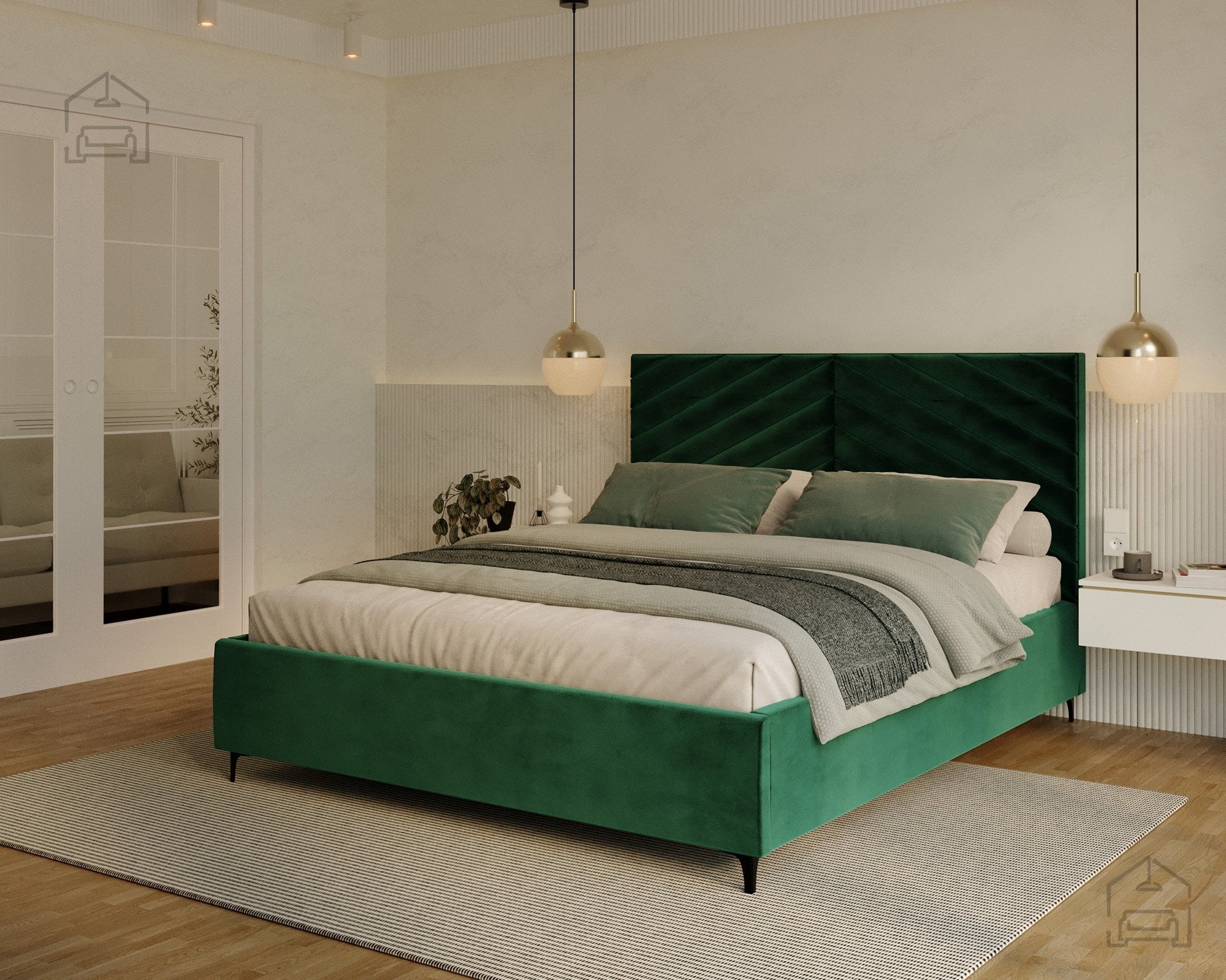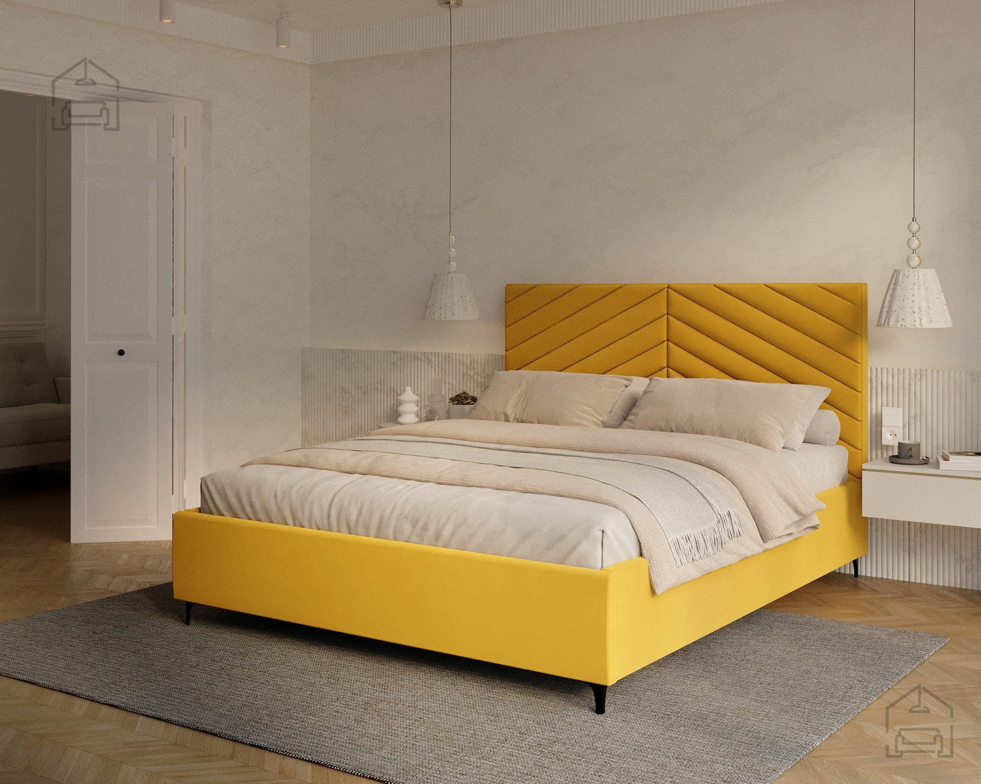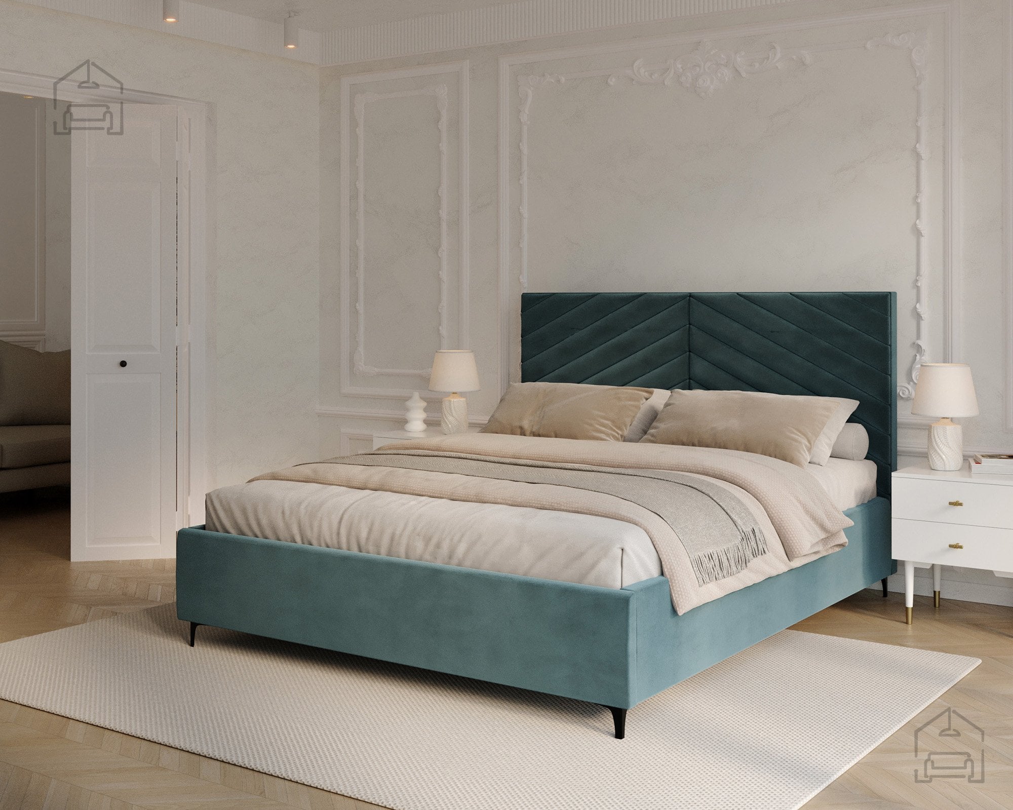 Poleg funkcionalnosti izstopa postelja tudi po oblikovnih detajlih. Široko oblazinjeno vzglavje je eden izmed najbolj prepoznavnih elementov modela. Prisloni se ob steno in omogoča udobno naslanjanje med branjem ali gledanjem televizije. Elegantni šivi in mehka struktura tkanine poudarijo sodoben karakter postelje, ki se lepo ujema z bogatejšimi notranjimi slogi.