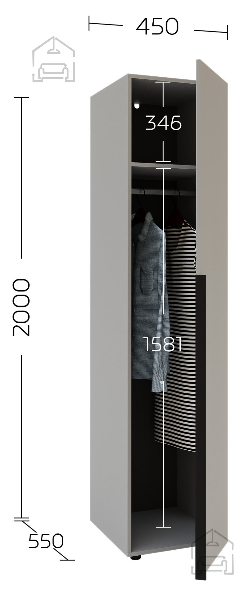 Ne glede na to, ali iščete rešitev za shranjevanje v spalnici, predsobi ali celo v pisarni, bo ta garderobna omara odlično opravljala svojo funkcijo. V notranjosti ponuja dovolj prostora za obešanje oblačil, shranjevanje sezonskih jakn, torb ali drugih dodatkov, ki jih želite imeti vedno pri roki. Zaradi svoje višine 200 cm omogoča optimalno izrabo prostora po višini, kar je še posebej pomembno v manjših stanovanjih, kjer šteje vsak centimeter.