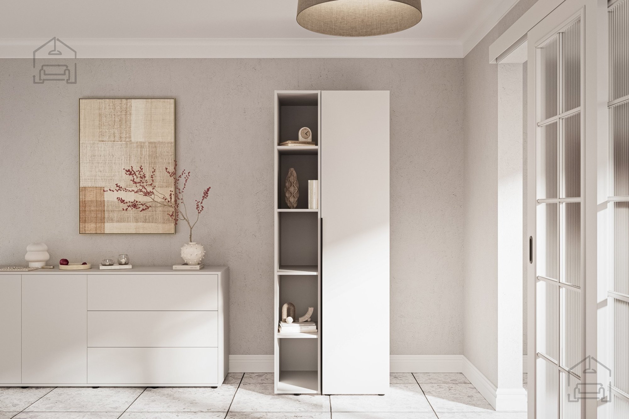 Ker je prostor vedno dragocen, ta kolekcija omogoča pametno izrabo vsakega kotička. Kombinirajte elemente z različnimi funkcijami – od omar in polic do TV-stojal in komod – ter ustvarite dom, ki je hkrati estetski in praktičen. Pohištvo iz kolekcije Solo ni le uporabno, temveč tudi vizualno privlačno – njegova svetla površina odbija svetlobo in daje prostoru občutek večje prostornosti.