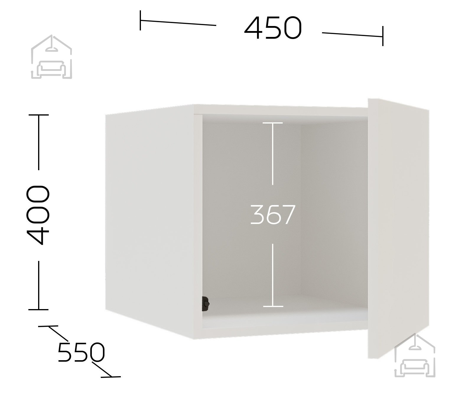 Dimenzije 45x55x40 cm omogočajo, da se omara brez težav prilega tudi manjšim prostorom, hkrati pa ponuja dovolj prostora za shranjevanje vsakodnevnih predmetov. Zgornja zasnova omogoča montažo nad druge omare ali delovne površine, kar je idealno za optimalno izrabo prostora v manjših stanovanjih ali kuhinjah.