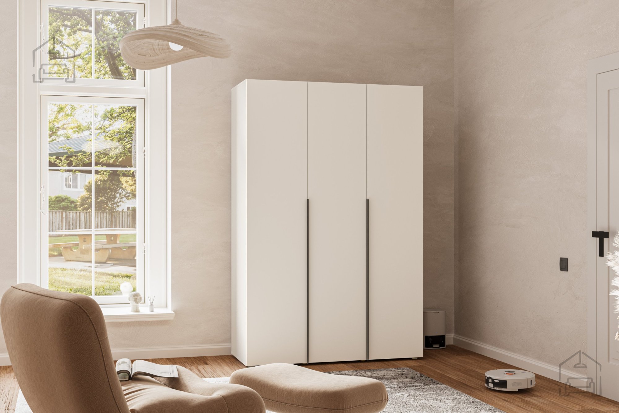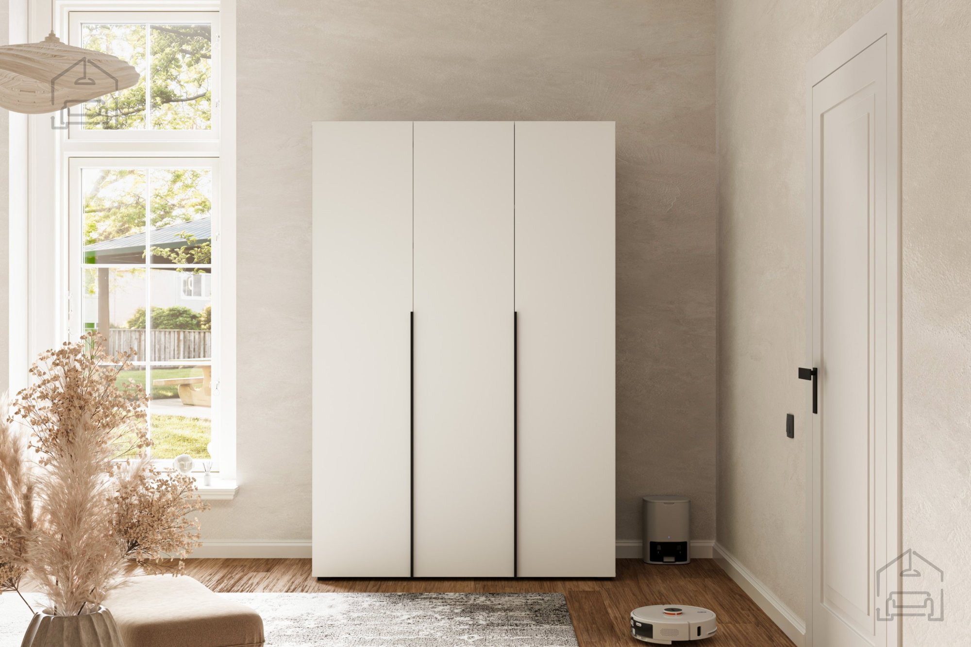 Če iščete popolno ravnovesje med sodobnim dizajnom, funkcionalnostjo in kakovostjo, je ta garderobna trivratna omara odlična izbira za vaš dom. S svojo čisto in svetlo barvo nimfea alba v prostor vnese občutek zračnosti, urejenosti in elegance. Njene kompaktne dimenzije 132x55x200 cm omogočajo, da se brez težav prilega tudi v manjše spalnice ali predsobe, hkrati pa ponuja presenetljivo veliko prostora za shranjevanje oblačil, posteljnine in drugih osebnih predmetov. Omara je izdelana iz 16 mm laminirane plošče, kar zagotavlja dolgo življenjsko dobo, odpornost proti praskam in enostavno čiščenje. Gre za material, ki združuje estetiko in praktičnost – idealen za vsakodnevno uporabo v sodobnih gospodinjstvih.