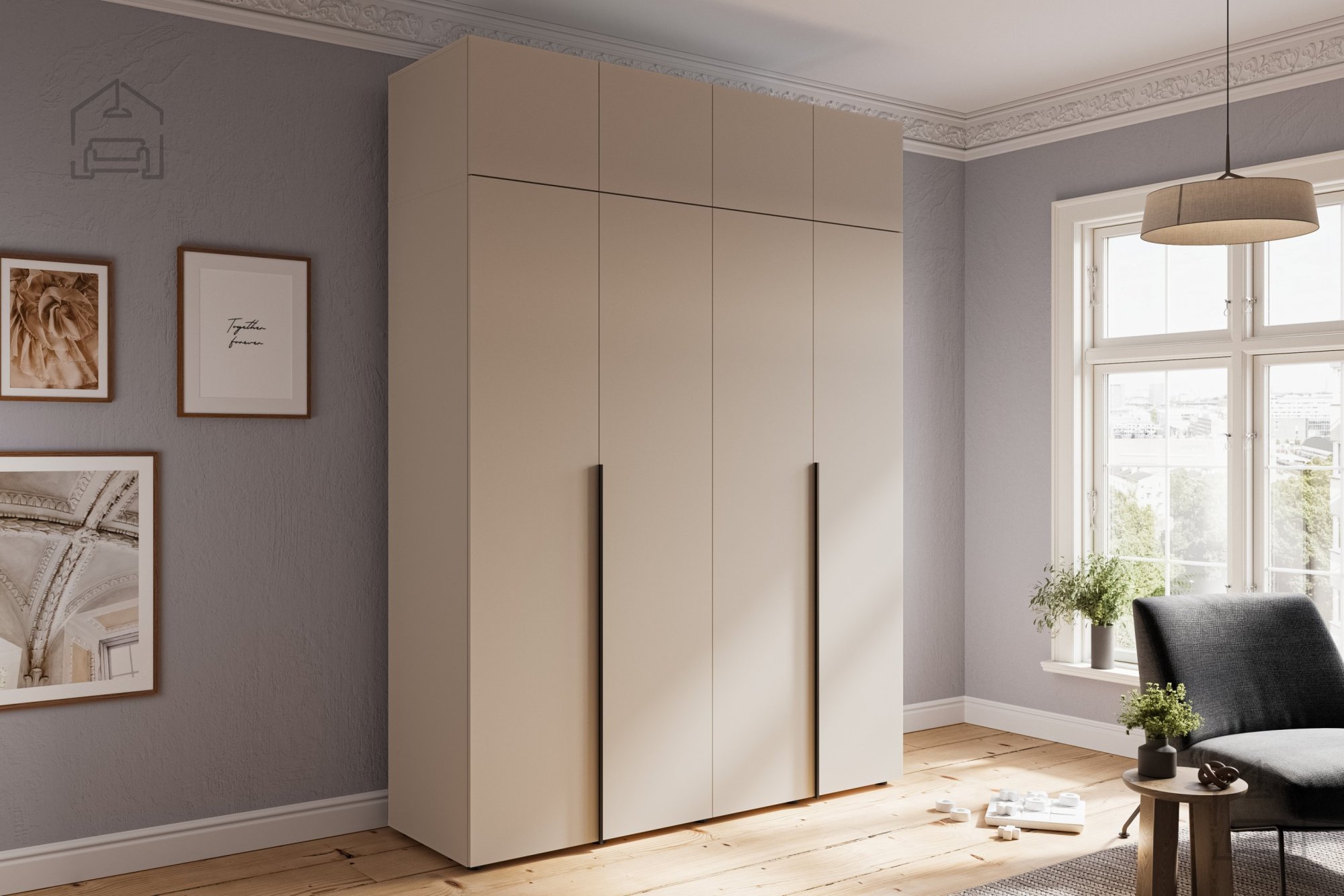Ste naveličani nerednih polic in prenatrpanih prostorov? Ta štirivratna zgornja omara v prefinjeni barvi kašmir je popolna izbira za vse, ki cenite eleganten videz, kakovostno izdelavo in praktično zasnovo. S svojimi dimenzijami 176x55x40 cm ponuja dovolj prostora za shranjevanje, obenem pa ohranja lahkotnost in estetiko prostora. Omara je izdelana iz 16 mm debele laminirane plošče, kar zagotavlja dolgo življenjsko dobo, odpornost proti vsakodnevni uporabi in enostavno čiščenje. Površina v barvi hrasta artisan v kombinaciji z odtenkom kašmir ustvarja topel, naraven in sodoben videz, ki se popolnoma ujema z različnimi slogi notranje opreme – od minimalističnega do klasičnega.