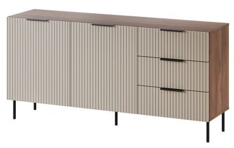 Komoda Almera typ 1 – Halmar predstavlja popolno ravnovesje med funkcionalnostjo, estetiko in kakovostjo. Njena kombinacija oreha in kašmirja ustvarja prijetno atmosfero, ki obogati vsak prostor. S trdno konstrukcijo, kovinskimi detajli in premišljenimi dimenzijami je ta komoda odlična izbira za vse, ki iščejo sodoben, a hkrati topel kos pohištva z dolgo življenjsko dobo.