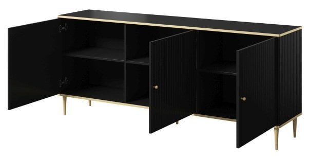 Komoda Glamour 180 cm – Halmar je odlična izbira za vse, ki cenijo kakovostno izdelavo, sodoben dizajn in detajle v zlati barvi. Njen uravnotežen videz, kombinacija mat površin in kovinskih poudarkov ustvarjajo vtis prefinjenosti, ne da bi bila preveč vpadljiva. Zaradi premišljenih proporcev in kakovostnih materialov bo ta komoda dolgoletna spremljevalka vašega doma, ki združuje estetiko in praktičnost.