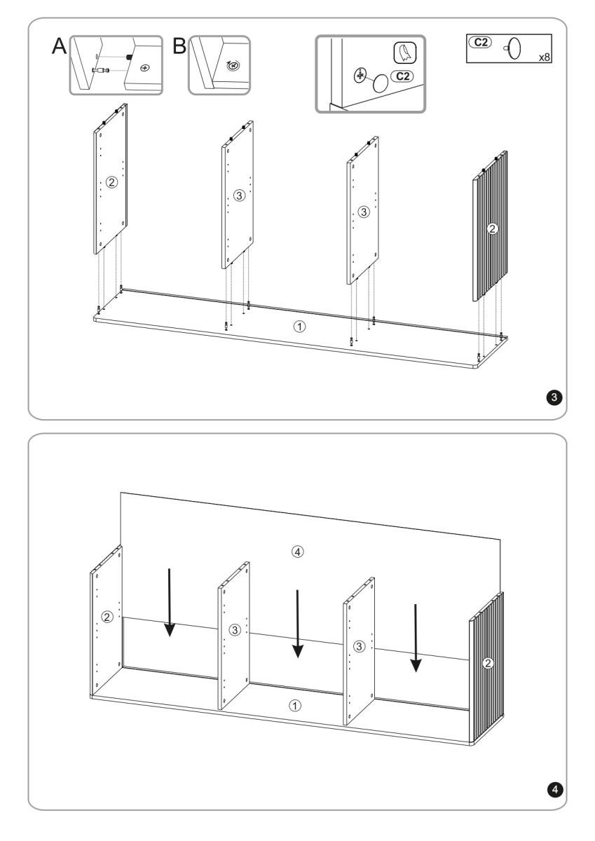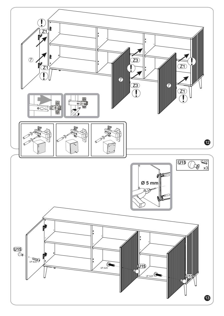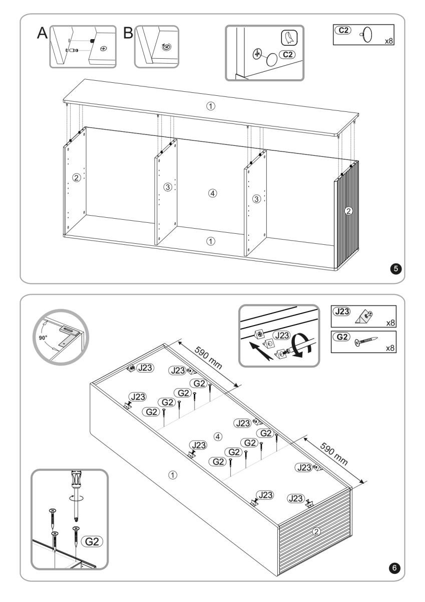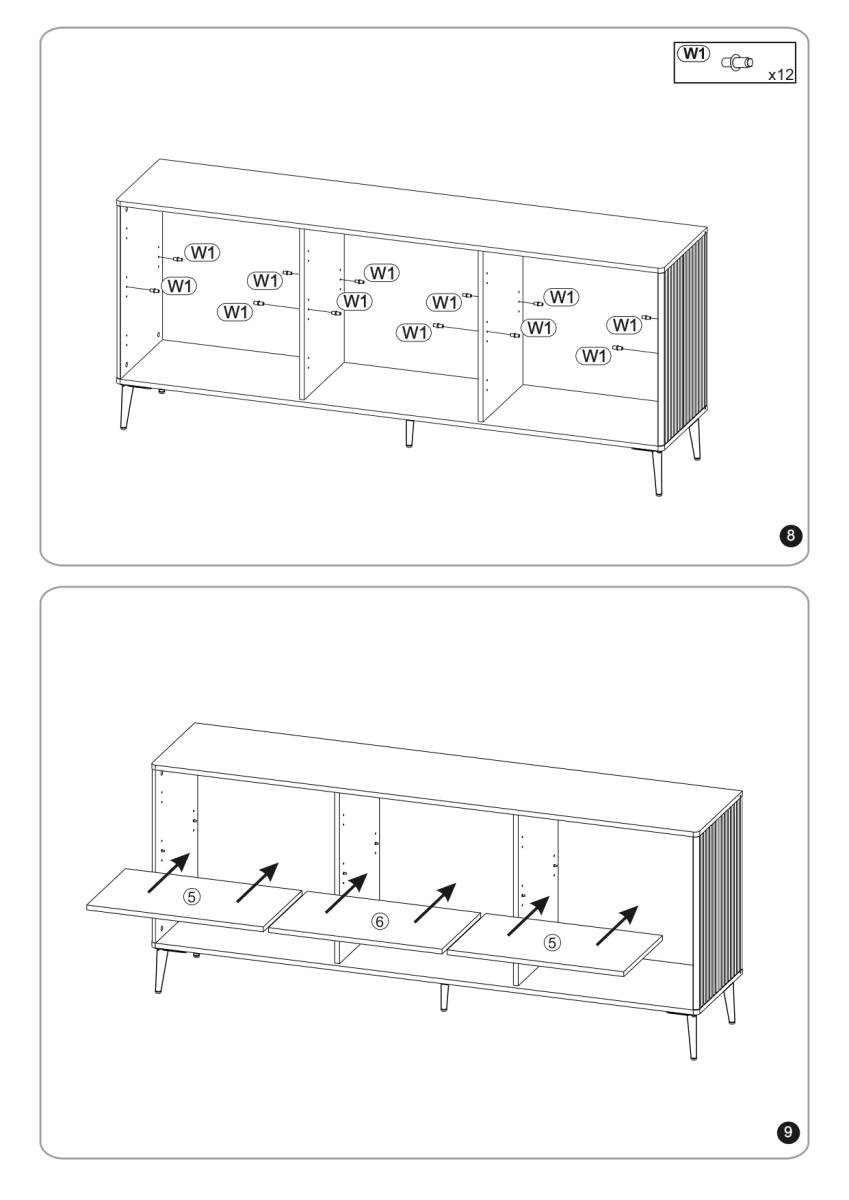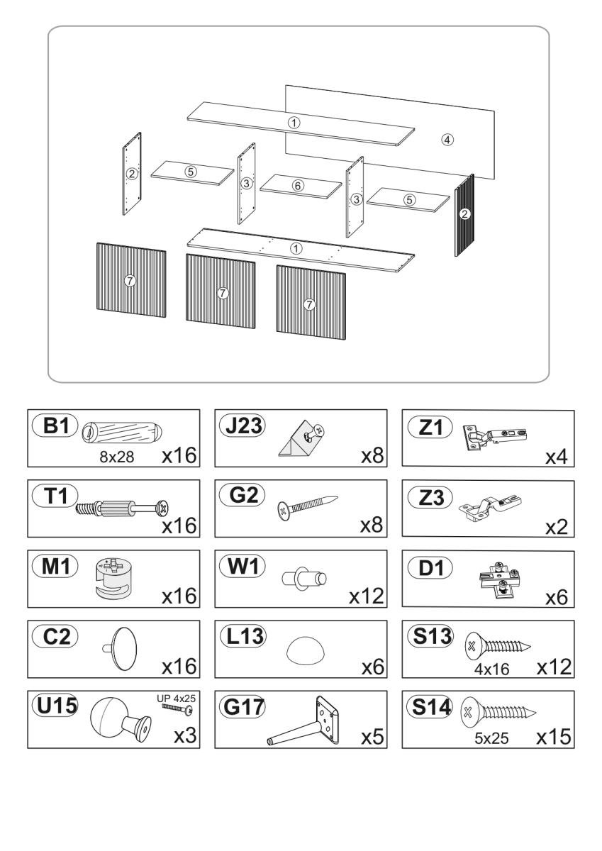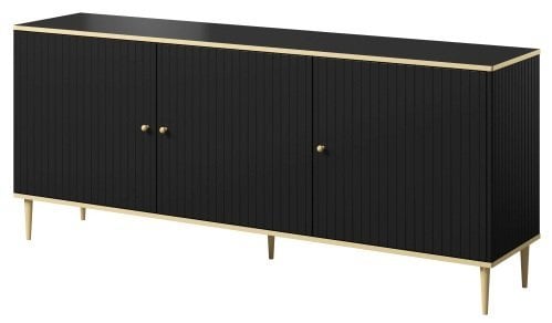 Komoda je izdelana iz kakovostnih materialov, ki zagotavljajo trpežnost in stabilnost. Zgornja plošča je iz 16 mm laminirane iverne plošče z mat površino, ki jo dopolnjuje brušen zlati rob. Sprednji deli in stranice so iz 16 mm debelega mat MDF materiala z dekorativnimi utori, ki ustvarjajo subtilno igro senc in tekstur. Ti detajli dajejo omarici poseben karakter, hkrati pa ohranjajo minimalistično, sodobno obliko.