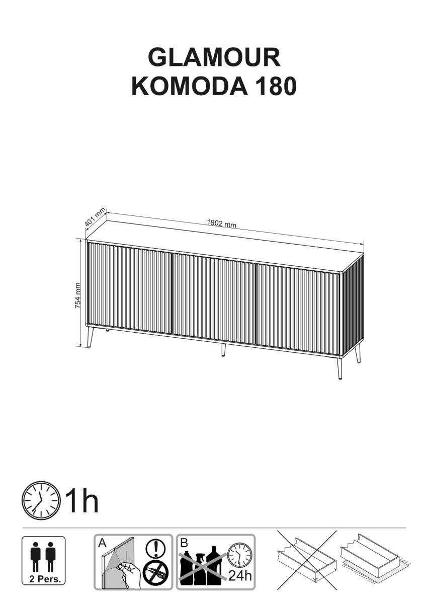 Komoda Glamour 180 cm je izraz sodobne elegance in funkcionalnega dizajna, ki v vsak prostor vnese pridih prefinjenosti. S svojo dolžino 180 cm ponuja obilico prostora za shranjevanje in hkrati deluje kot estetski poudarek v dnevni sobi, jedilnici ali spalnici. Kombinacija mat površine, zlatih detajlov in uravnoteženih linij poskrbi za prestižen, a hkrati topel videz, značilen za kolekcijo Glamour znamke Halmar.