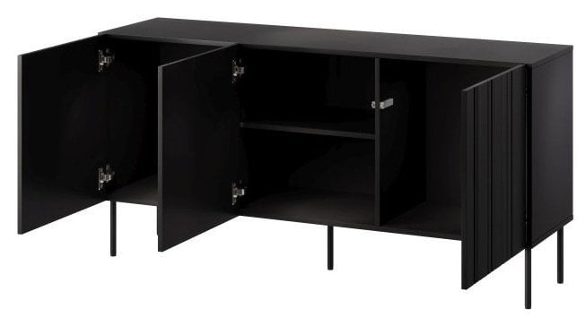 Komoda Isla 150 cm v črni barvi izžareva prefinjen značaj. Mat površina poudari njeno sodobno estetiko, medtem ko čiste linije in brezčasna oblika poskrbijo, da se ujema z različnimi kosi pohištva. Komoda ni le vizualno privlačna, temveč tudi zelo praktična. Zgornja odlagalna površina nudi prostor za dekorativne elemente, kot so vaze, svetila ali okvirjene fotografije, medtem ko notranji del omogoča shranjevanje različnih predmetov, od tekstila do dokumentov in osebnih dodatkov.