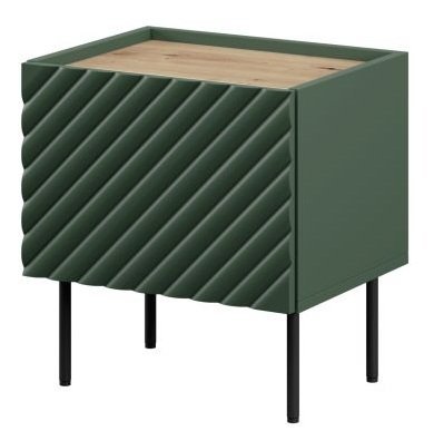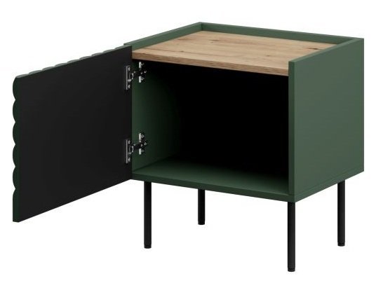 Komplet nočnih omaric Onda v temno zeleni barvi združuje sodobno estetiko, kakovostne materiale in premišljeno funkcionalnost. Zasnovan je za vse, ki želijo v spalnici doseči uravnotežen videz med toplino lesa in elegantno globino zelene barve. Vsaka omarica v kompletu ponuja praktično shranjevalno površino, dovolj prostora za najnujnejše osebne predmete ter stabilno konstrukcijo, ki zagotavlja dolgo življenjsko dobo izdelka.