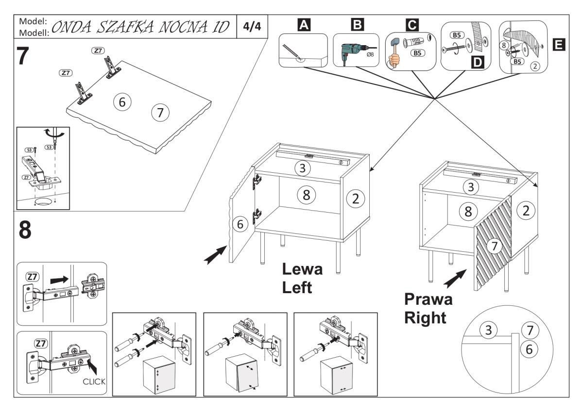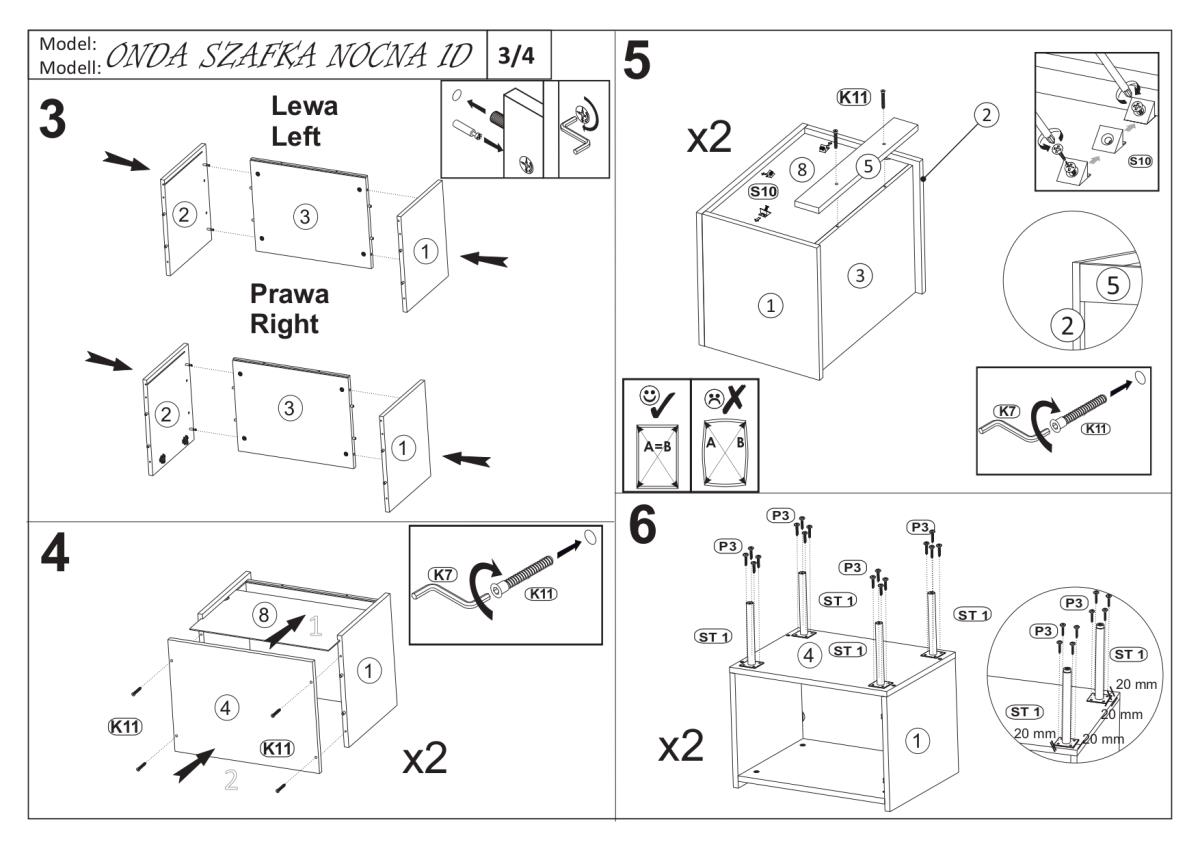 Komplet vključuje dve nočni omarici, kar omogoča simetrično ureditev obeh strani postelje. Vsaka omarica je opremljena s tečaji s tihim zapiranjem, kar preprečuje neprijetne zvoke pri uporabi in povečuje udobje v vsakodnevnem življenju. Takšen mehanizem je še posebej primeren za spalnice, kjer je miren in sproščen ambient ključnega pomena. Površina zgornje plošče omogoča odlaganje svetilke, knjige ali dekorativnih predmetov, medtem ko notranji prostor nudi diskreten prostor za shranjevanje osebnih stvari.