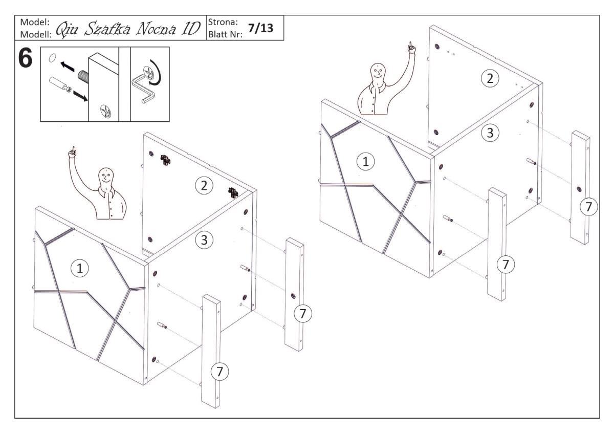 Namesto klasičnih nog ima komplet Qiu podstavek, ki deluje kot trdna osnova. Takšna zasnova povečuje stabilnost in hkrati ohranja sodoben videz. Podstavek vizualno "dvigne" omarico od tal, kar olajša tudi čiščenje tal pod njo.