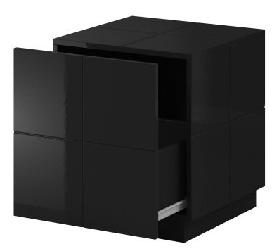 Komplet nočnih omaric Reja v črni sijaj izvedbi navduši z modernim videzom in funkcionalno zasnovo. Zunanjost iz gladkega, sijočega materiala daje pohištvu prestižen videz, ki se odlično poda tako minimalističnim kot klasično urejenim spalnicam. Dve enaki omarici sta praktična rešitev za posteljo z obeh strani, kar omogoča simetrično ureditev prostora in dodatno površino za svetilko, knjige ali osebne predmete.