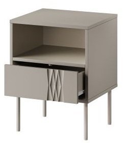 Komplet nočnih omaric Tresse – Halmar je zasnovan tako, da se odlično poda k različnim slogom opreme spalnice. Bež barva omogoča enostavno kombiniranje z drugimi toni – od svetlih pastelnim do temnejših lesenih odtenkov. Zaradi svoje diskretne barvne sheme se omarici lepo ujemata z modernimi, skandinavskimi ali minimalističnimi interjerji. Površina zgornje plošče ponuja dovolj prostora za odlaganje svetilke, ure, knjige ali drugih manjših predmetov, ki jih želite imeti pri roki.