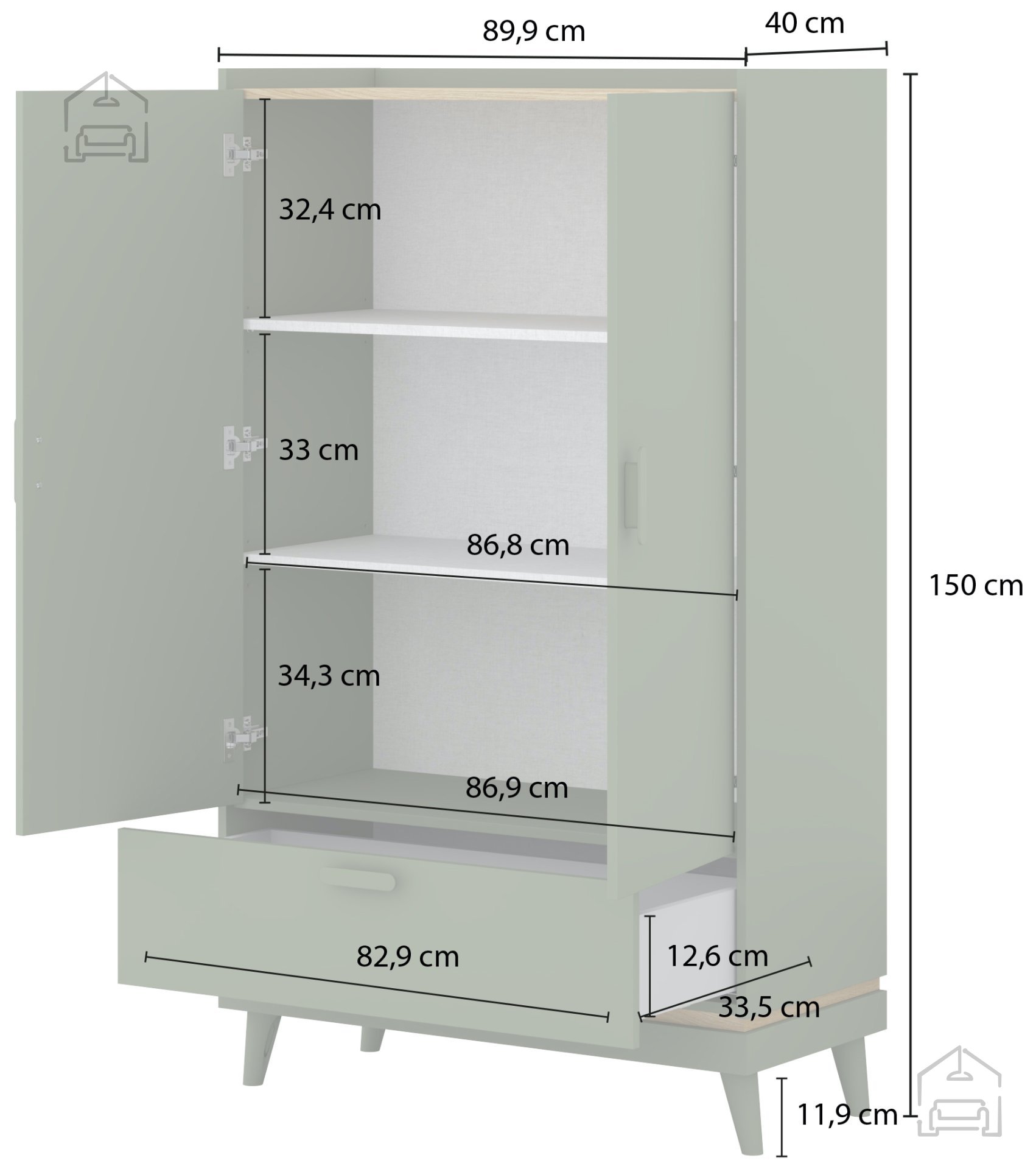 Omara je izdelana v priznani poljski tovarni Helvetia Meble, ki slovi po natančni izdelavi in uporabi kakovostnih materialov. Vsak kos je zasnovan z mislijo na trajnost in udobje, kar pomeni, da boste s to omaro uživali v brezskrbni uporabi še vrsto let. Plastične nogice zagotavljajo stabilnost in zaščito tal, obenem pa ohranjajo lahkotnost konstrukcije. Zaradi svoje premišljene zasnove se omara enostavno vklopi v različne stile opreme – od modernega do rustikalnega ali klasičnega.