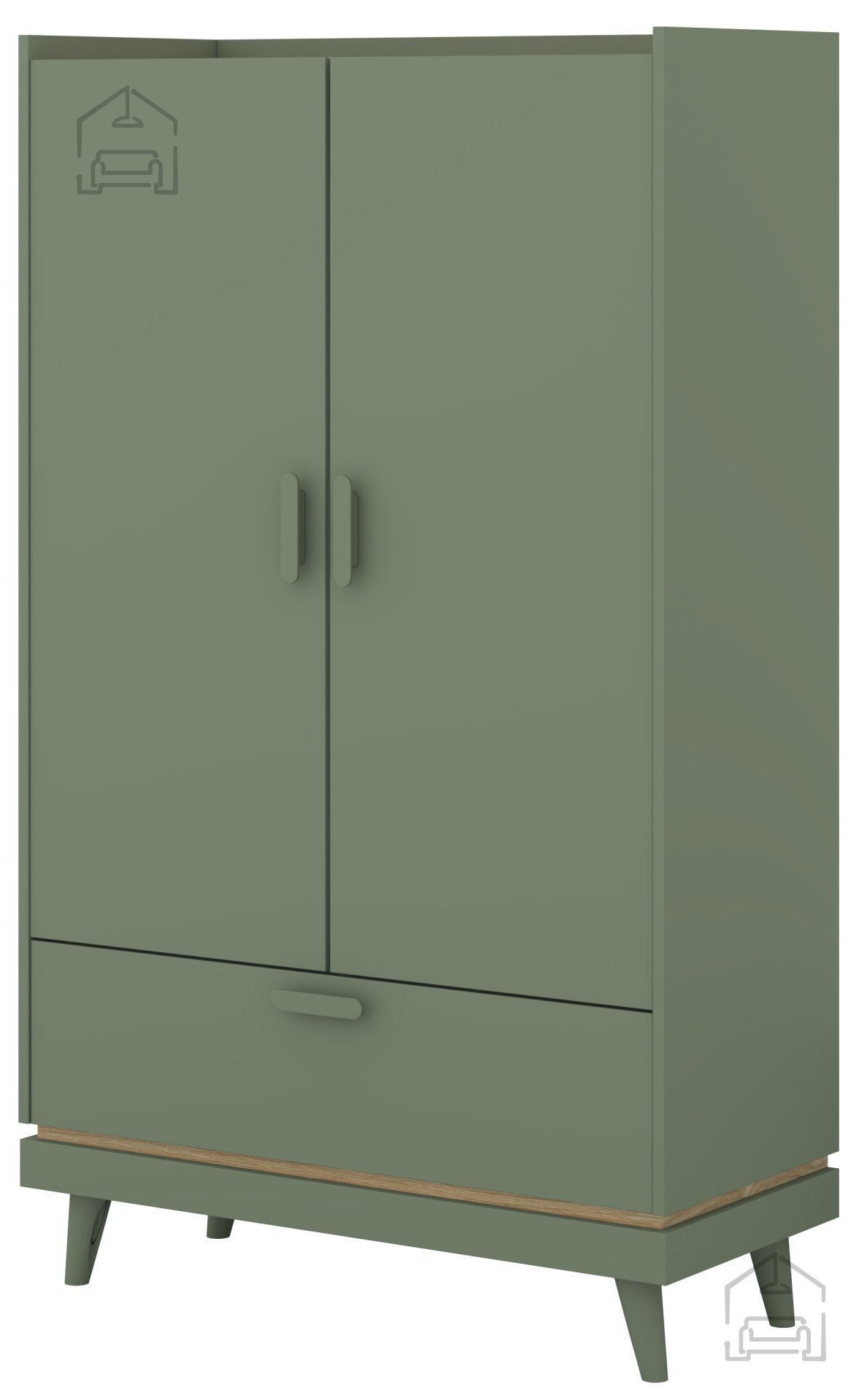 Barvna kombinacija zbledelo zeleno oljen hrast in nežno zelene ustvarja občutek topline in umirjenosti. Ta odtenek zelene v kombinaciji z naravno teksturo lesa se popolno zlije v vsak interier – bodisi v dnevni sobi, spalnici ali predsobi. Omara prinaša svežino narave v vaš dom, hkrati pa ohranja minimalistično in elegantno linijo, značilno za skandinavski slog, ki ga vedno bolj cenijo sodobni domovi.