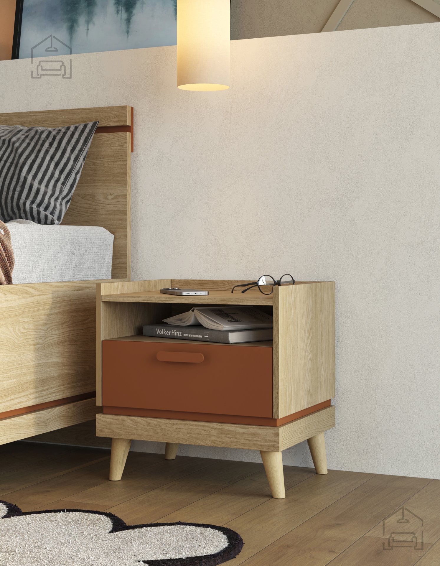 Ustvarite popolno zatočišče za sprostitev, mir in eleganco v svojem domu z edinstveno spalnico, ki združuje brezčasno toplino lesa s sodobnim pridihom skandinavskega oblikovanja. Kombinacija barv oljen hrast in oljen hrast-opeka prinaša naravno harmonijo ter občutek udobja, ki ga boste začutili vsak dan. Ta spalnica je zasnovana za tiste, ki cenijo kakovost, estetiko in funkcionalnost v enem.