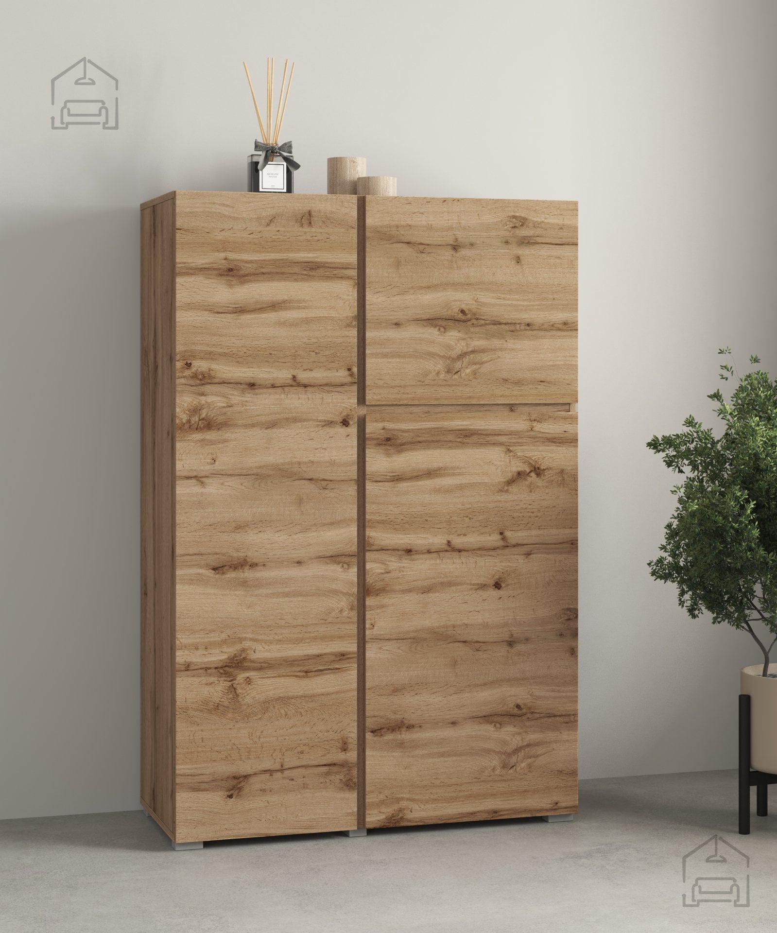 Komoda visoka Asymetric – Helvetia meble je odlična izbira za vse, ki cenijo sodoben dizajn, funkcionalnost in kakovostno evropsko izdelavo. S svojo preprosto, a izrazito obliko v barvi hrast wotan se harmonično zlije z različnimi interierji in ustvarja prijetno, toplo atmosfero. Odlikuje jo natančna izdelava, trpežni materiali in estetska dovršenost, zaradi česar bo vaš prostor vedno videti urejen in prefinjen.