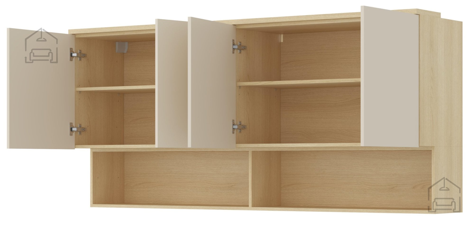 Viseča omarica Terra – Helvetia Meble je sodoben kos pohištva, zasnovan za tiste, ki iščejo funkcionalnost, minimalistično eleganco in kakovostno izdelavo. Omarica je dolga 186 cm, široka 43 cm in visoka 85 cm, kar omogoča prostorno shranjevanje, hkrati pa ohranja vizualno lahkotnost prostora. Zaradi možnosti montaže na steno deluje lebdeče, kar ustvarja občutek večjega prostora in olajša čiščenje tal pod njo.