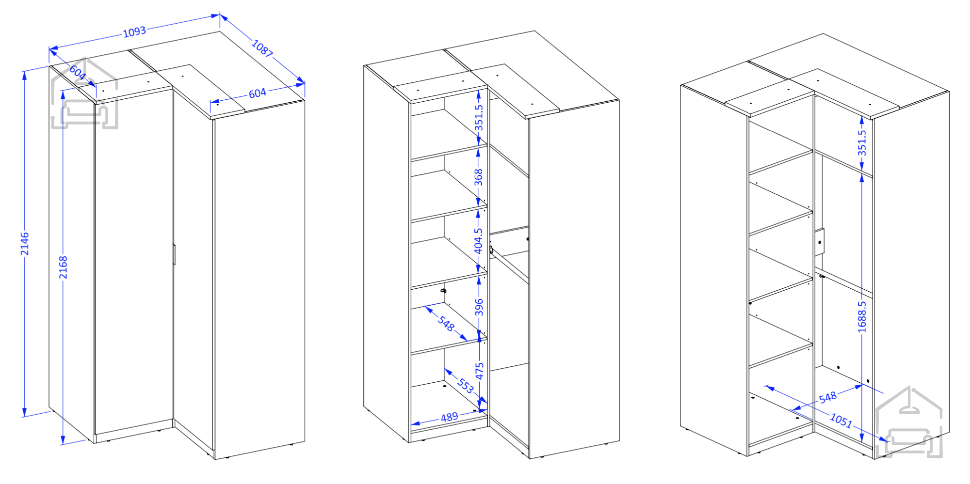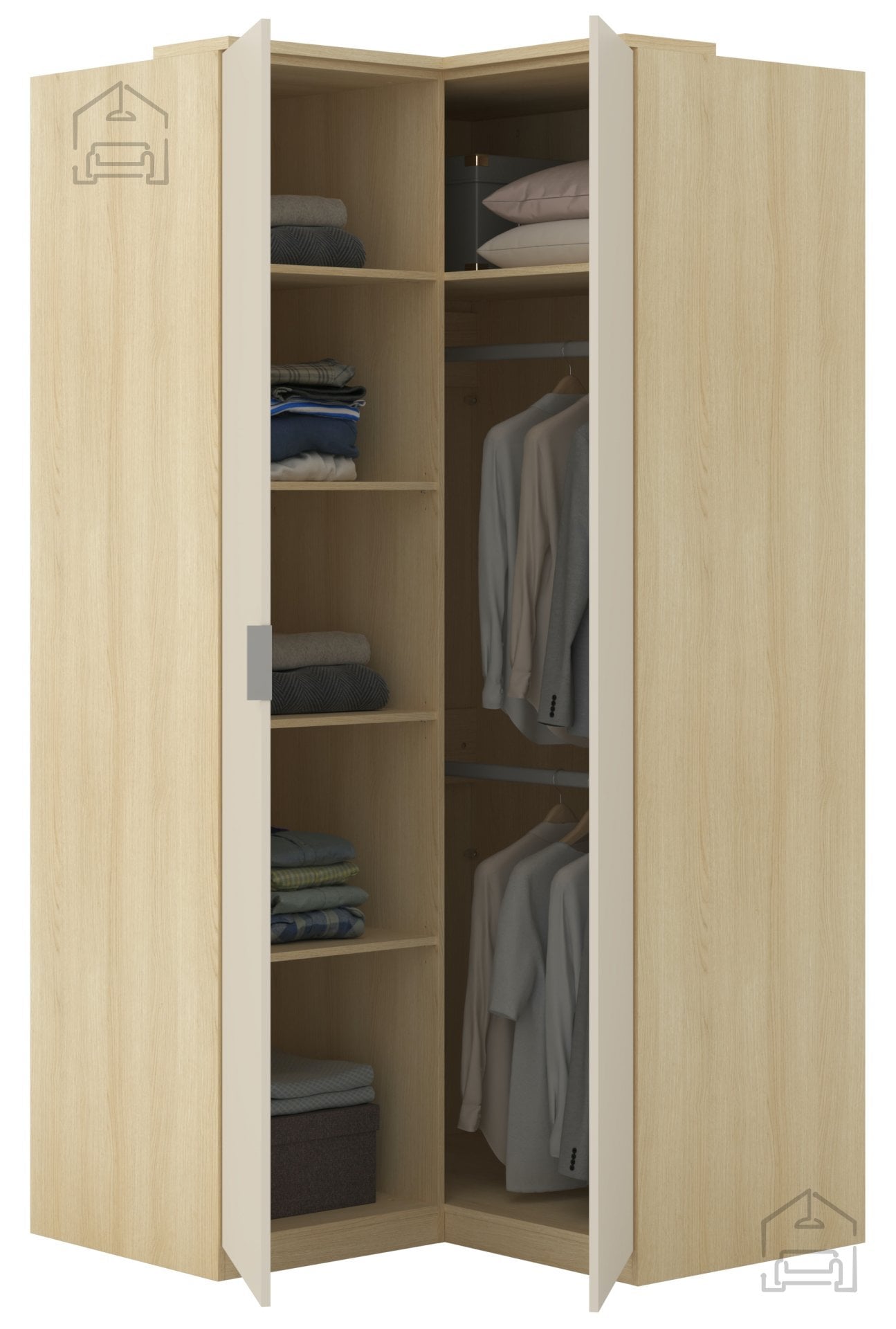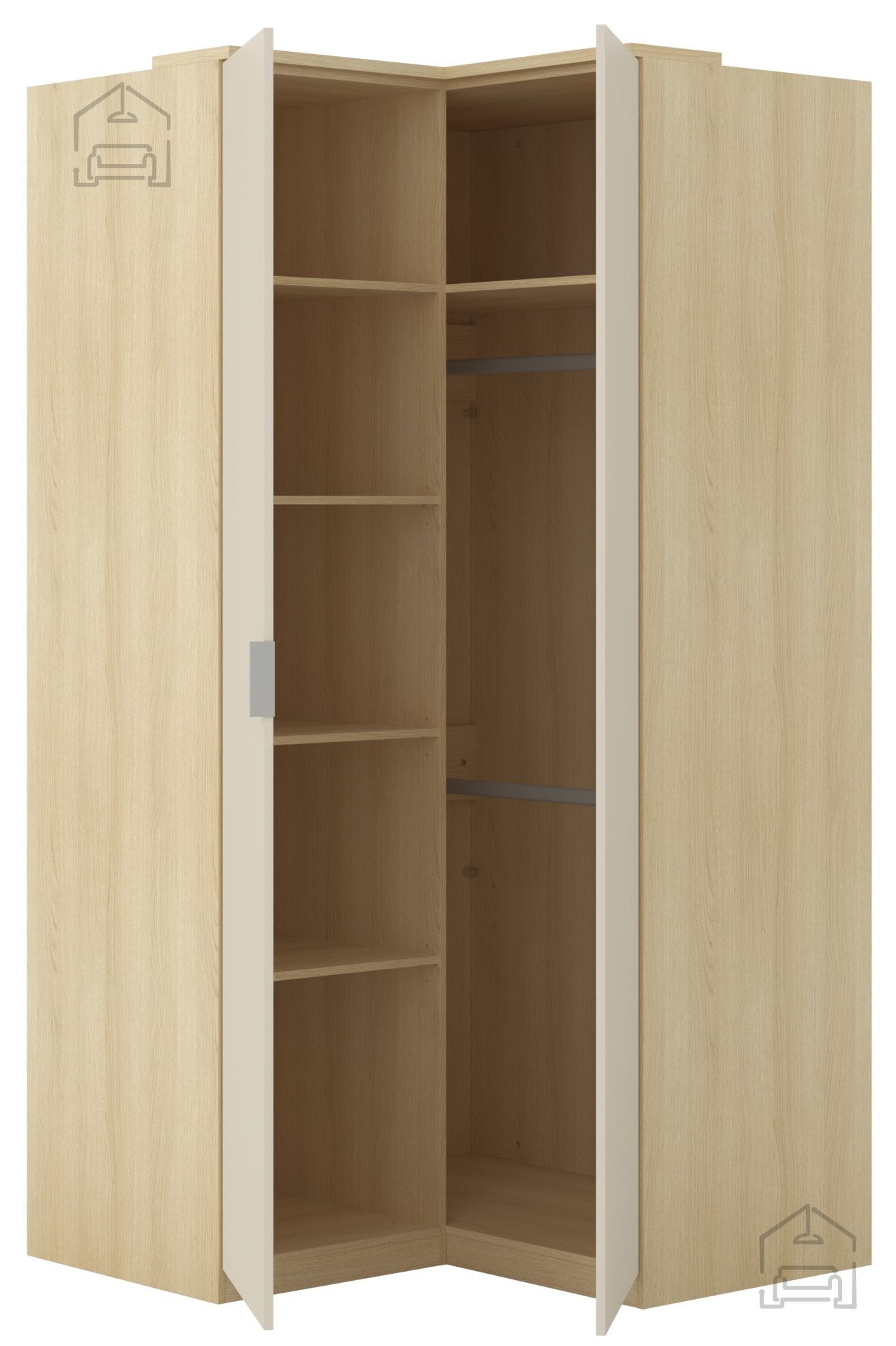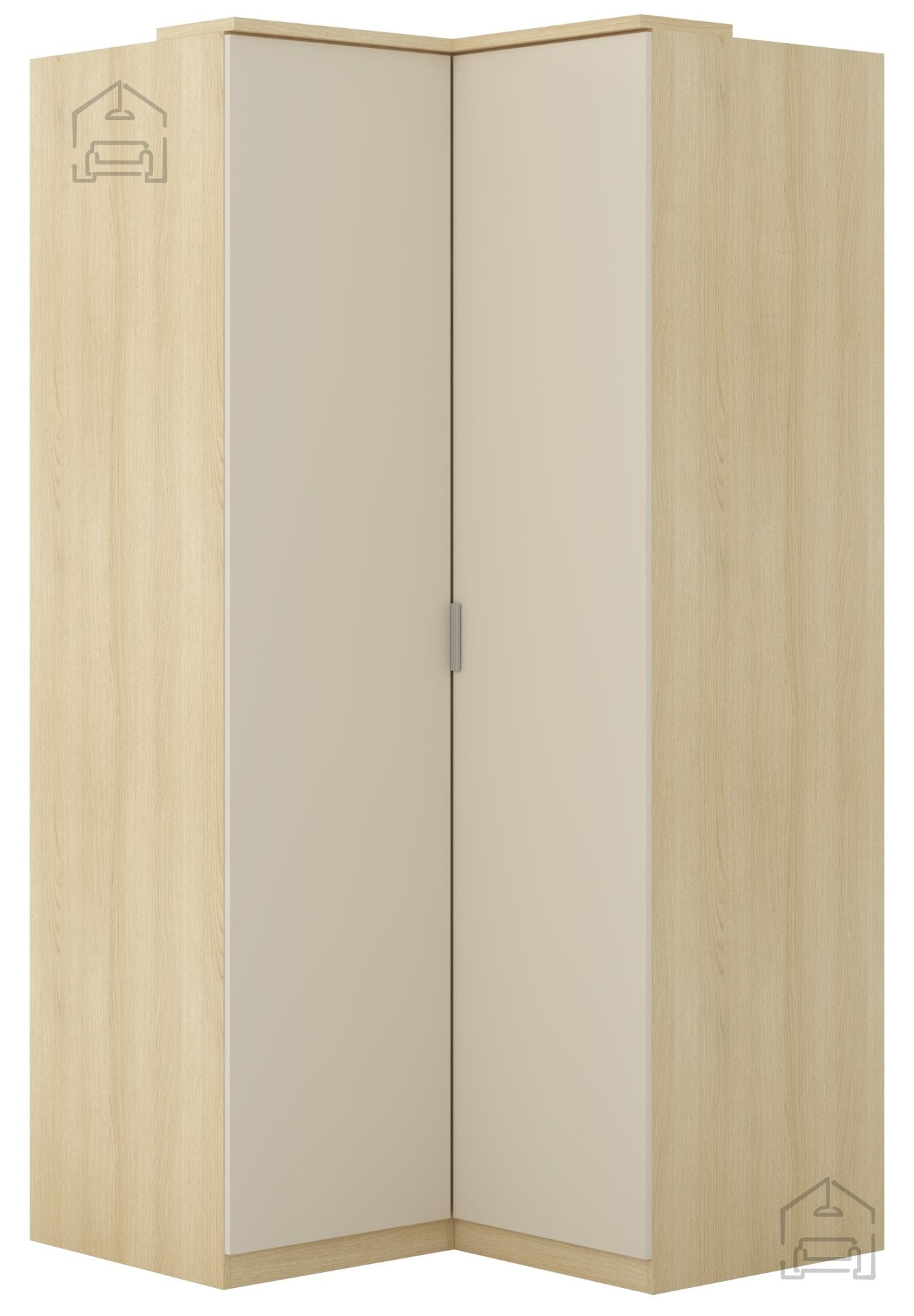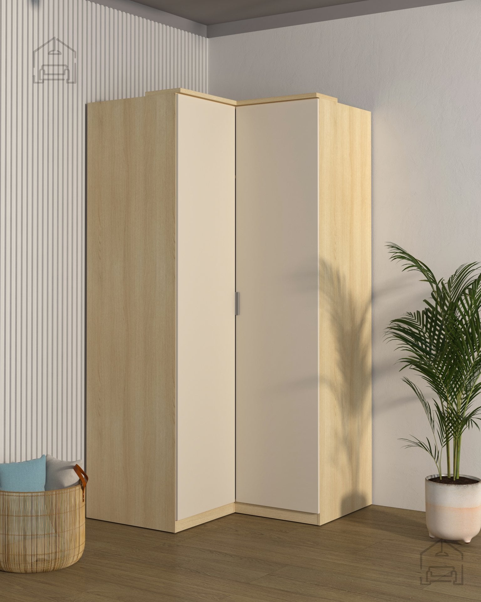 Kotna zasnova je ena največjih prednosti tega modela. Omogoča učinkovito izrabo prostora, še posebej v manjših spalnicah, garderobah ali otroških sobah. Dvokrilna vrata se odpirajo široko, kar omogoča dober pregled nad notranjostjo. Notranja razporeditev je prilagojena shranjevanju oblačil, dodatkov in drugih predmetov, pri čemer nudi dovolj prostora za obešanje oblačil in namestitev polic. Zaradi enostavne oblike jo je mogoče kombinirati z drugimi elementi kolekcije Terra, kar omogoča modularno sestavo večjih garderobnih sistemov po meri vaših potreb.