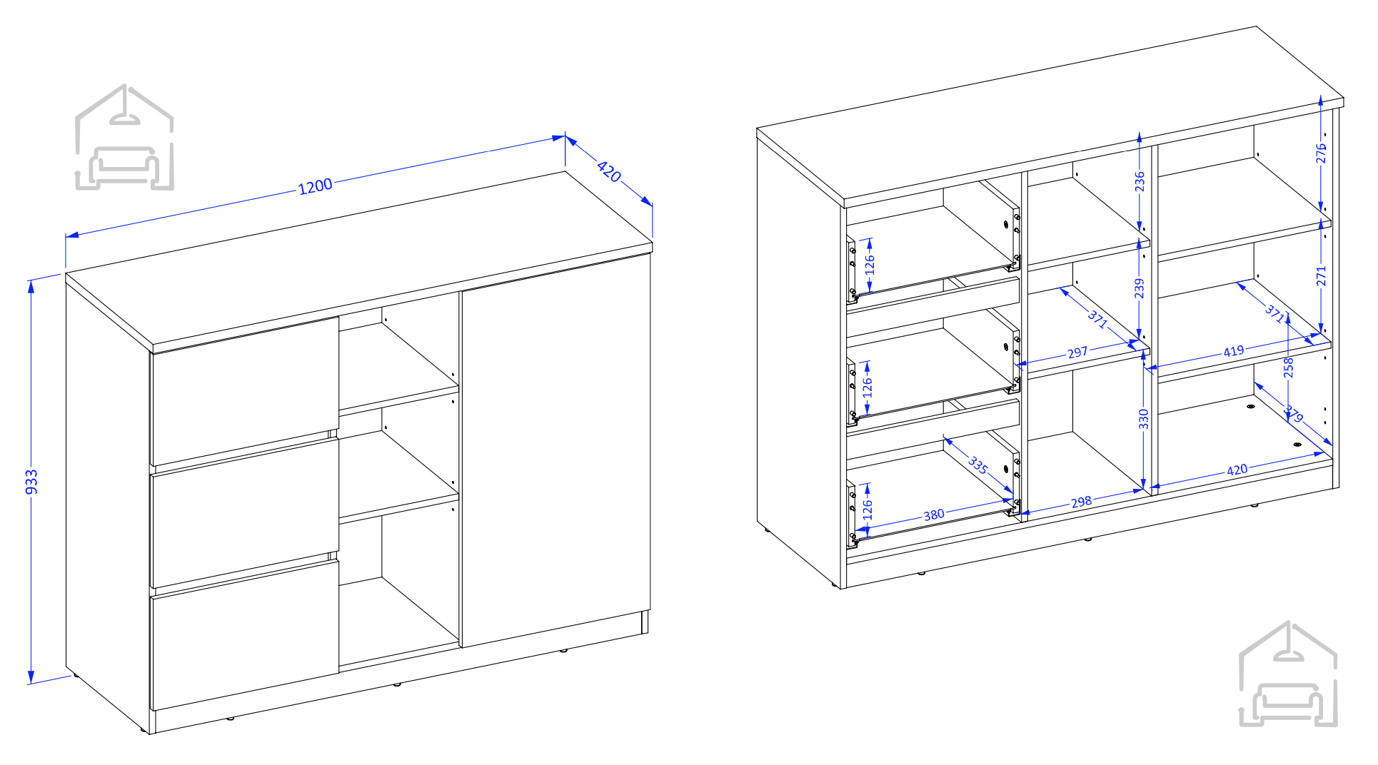 Komoda je izdelana iz kakovostne laminirane iverne plošče debeline 15 mm, ki zagotavlja trdnost in dolgo življenjsko dobo. Površina je odporna proti praskam in vlagi, kar omogoča enostavno čiščenje in vzdrževanje. Robovi so zaščiteni z ABS in papirnatimi trakovi, kar dodatno ščiti plošče pred obrabo in mehanskimi poškodbami. To je praktična rešitev za vsakodnevno uporabo v domovih, kjer je pohištvo izpostavljeno večji obremenitvi.