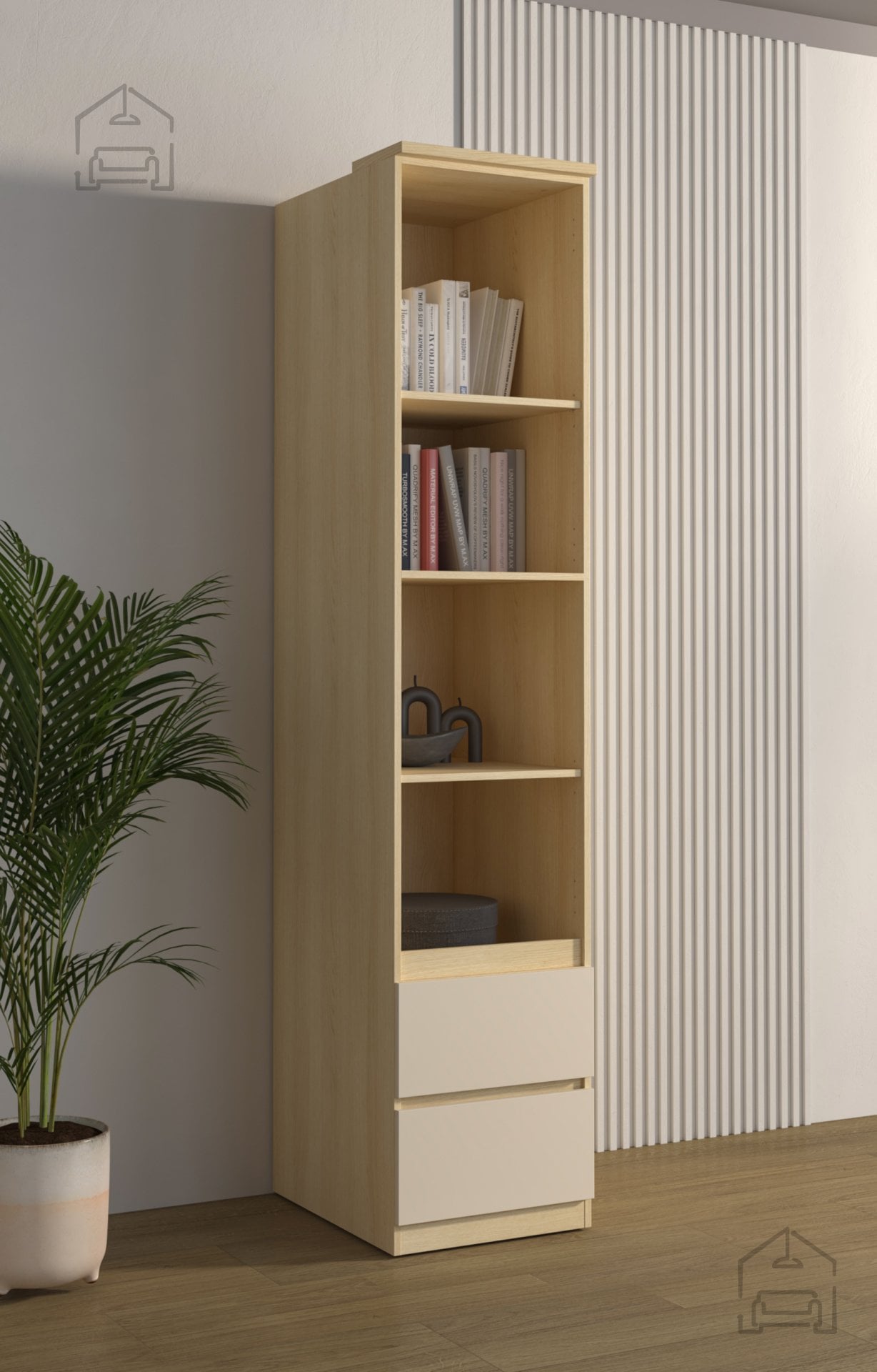 Omara Terra se odlično poda v sodobne interierje, kjer prevladujejo naravni materiali in svetli toni. Zaradi nevtralne barvne sheme jo lahko kombinirate z belim, sivim ali celo črnim pohištvom. Primerna je za spalnice, predsobe, delovne sobe ali mladinske sobe. Njena višina omogoča shranjevanje večjih kosov oblačil, medtem ko kompaktna širina omogoča postavitev tudi v manjše prostore, kjer je vsak centimeter pomemben.