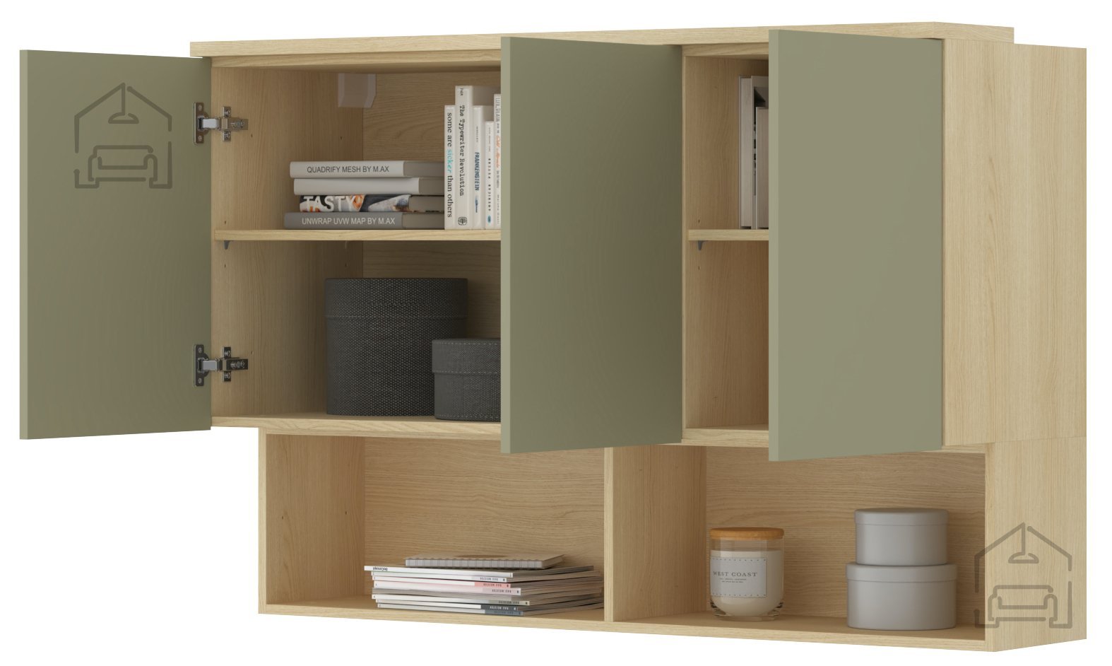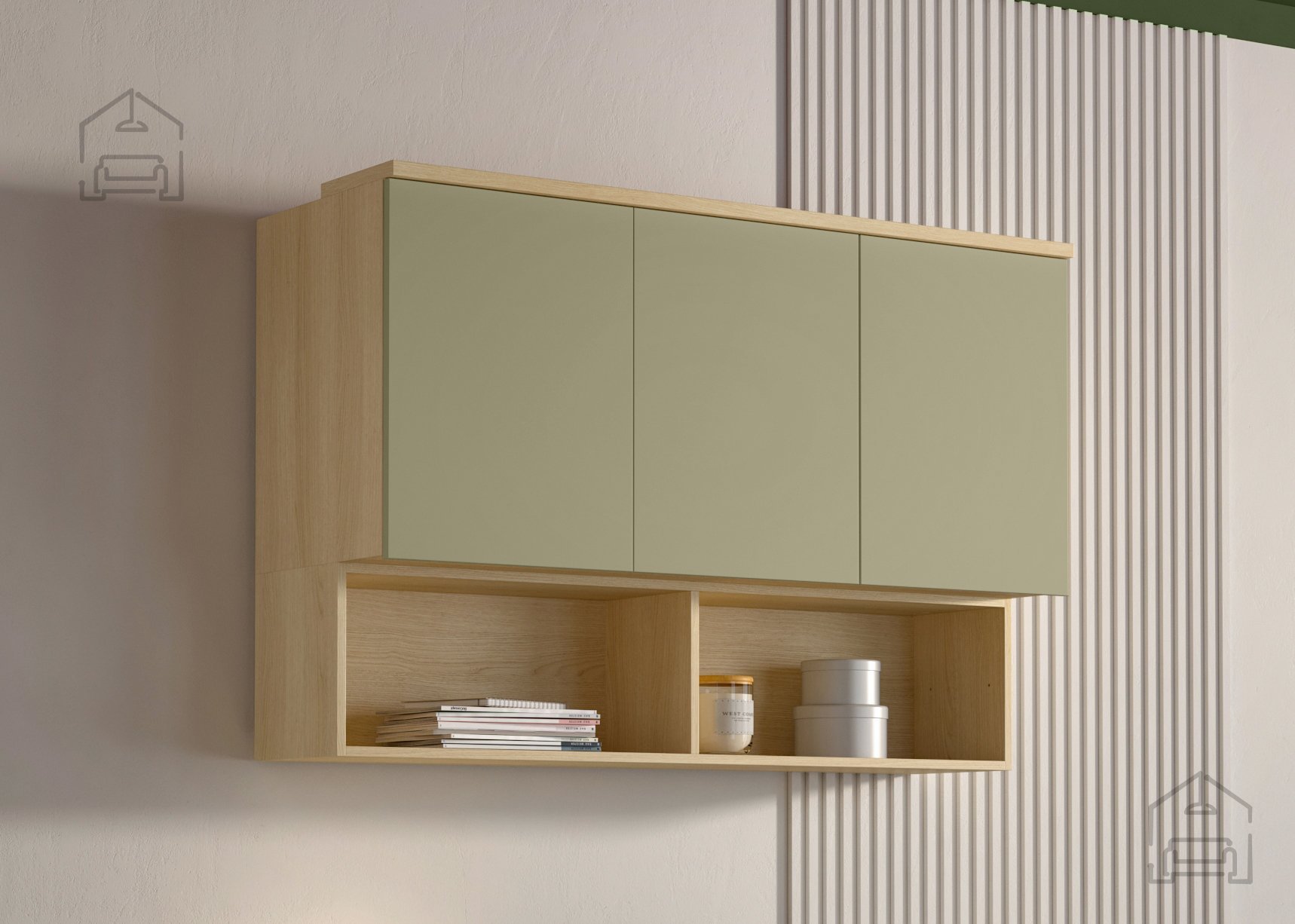 Viseča omarica Terra je del širše kolekcije pohištva, zasnovane v istem barvnem in materialnem konceptu. Lahko jo kombinirate z drugimi elementi iz linije, kot so nizke komode, vitrine ali TV enote, da ustvarite usklajen videz dnevnega prostora. Zaradi nevtralnega barvnega tona se lepo dopolnjuje tudi z drugimi lesenimi ali barvnimi površinami.