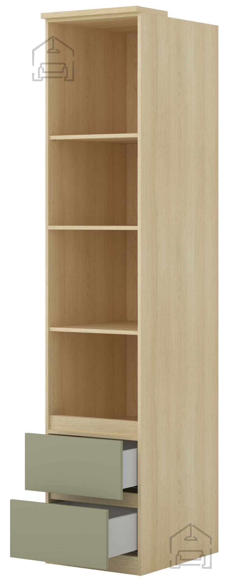 Regal Terra je zasnovan kot večnamenski element, ki hkrati deluje dekorativno in uporabno. Njegove kompaktne mere omogočajo postavitev tudi v manjše prostore, ne da bi pri tem izgubili na prostoru za shranjevanje. Visoka konstrukcija nudi dovolj površin za knjige, dekorativne predmete, škatle ali dokumente. Zaradi premišljene kombinacije barv se regal lepo ujema z različnimi barvnimi shemami notranje opreme – od svetlih skandinavskih tonov do temnejših, industrijskih ambientov.