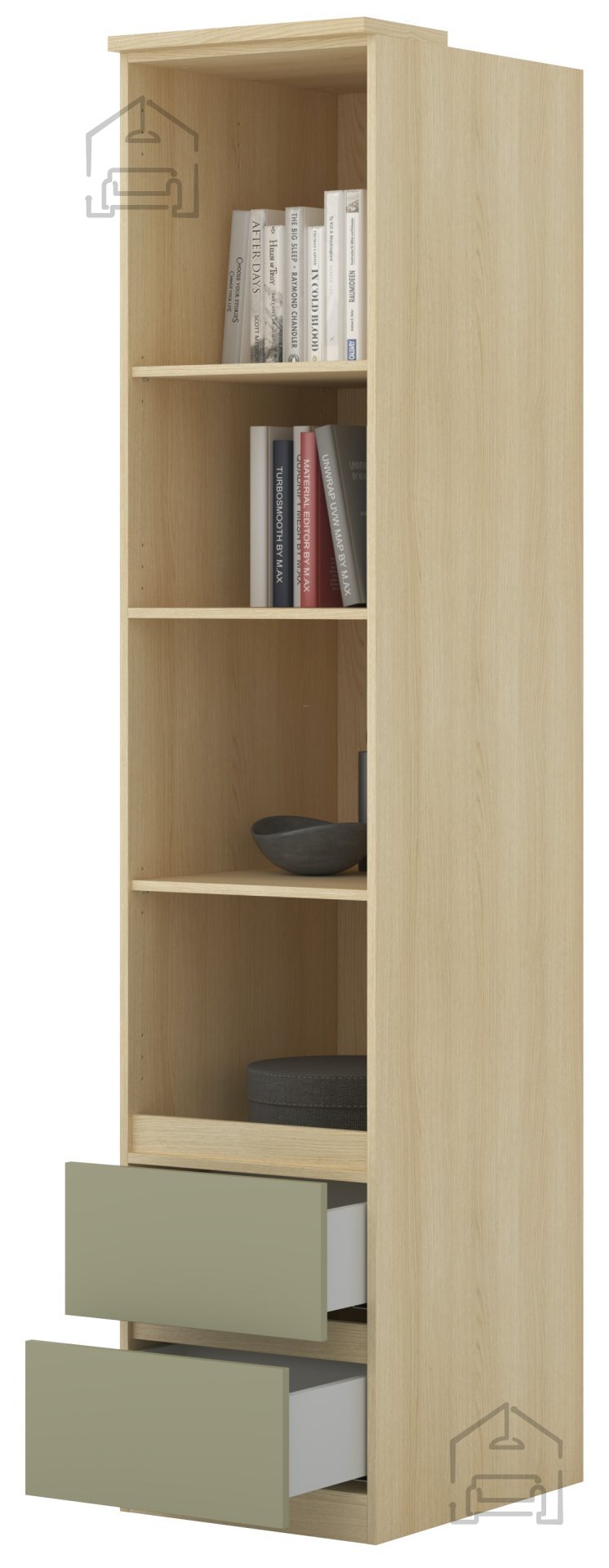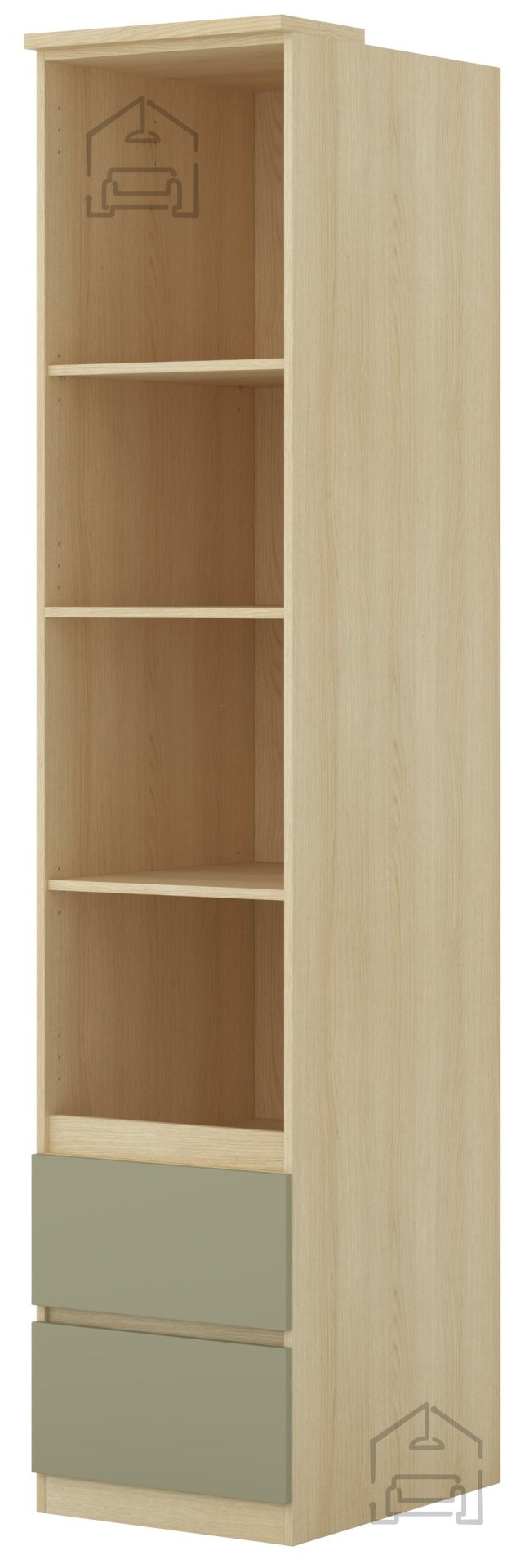 Regal Terra lahko uporabite kot samostojen kos pohištva ali v kombinaciji z drugimi elementi iz serije Terra. Zaradi nevtralne barvne palete se odlično ujema z različnimi stili – od klasičnega do modernega. V dnevnem prostoru bo služil kot knjižna polica ali prostor za okrasne predmete, v pisarni pa kot funkcionalna omara za dokumente. Lahka konstrukcija omogoča enostavno premikanje, laminirana površina pa zmanjšuje potrebo po posebnem vzdrževanju – dovolj je le občasno brisanje z mehko, vlažno krpo.