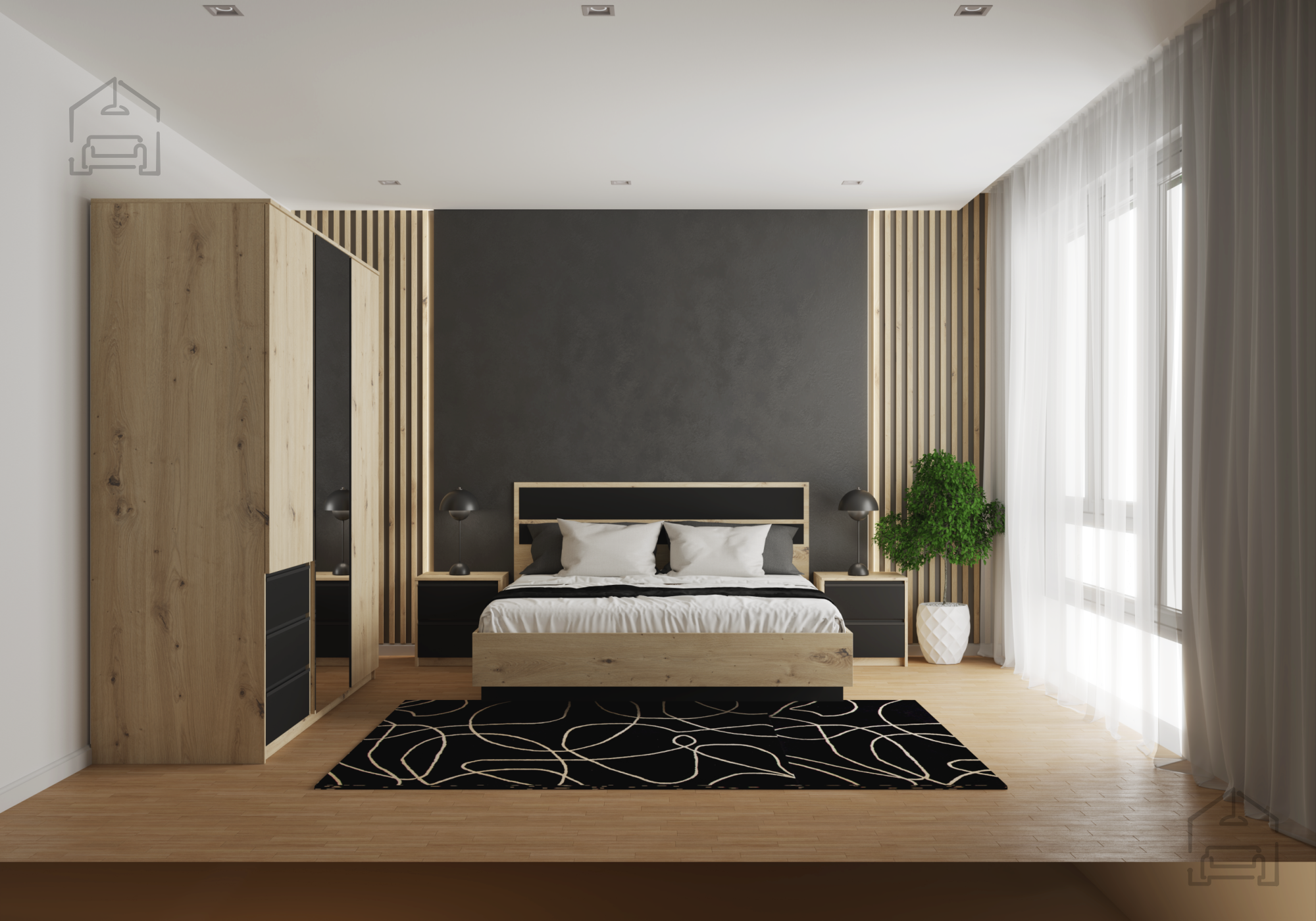 Nočna omarica Aura je idealna izbira za vse, ki cenijo preprostost in urejenost prostora. Njena kombinacija naravnega videza lesa in kontrastnih črnih detajlov omogoča, da se zlahka vključi v različne stile – od modernih do klasičnih spalnic. Laminirana površina se lepo ujema s tekstilnimi materiali, kovinskimi elementi ali svetlimi stenami, zato omarica deluje harmonično v vsakem ambientu.