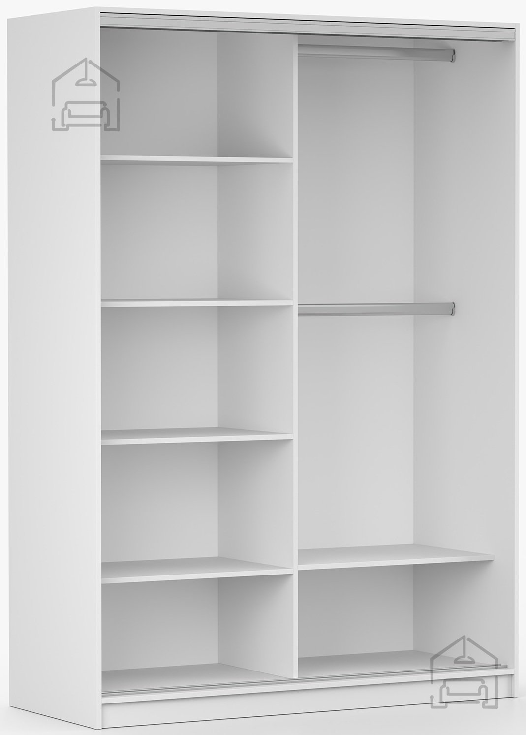Omara Tokyo M je zasnovana z mislijo na praktičnost. V notranjosti ponuja dovolj prostora za obešanje oblačil ter za zlaganje perila, posteljnine ali dodatkov. Drsni mehanizem vrat omogoča gladko in tiho premikanje, kar povečuje udobje pri vsakodnevni uporabi. Bela barva pa poskrbi za brezčasen videz, ki se zlahka prilagodi različnim slogom notranje opreme – od minimalističnega do klasičnega.