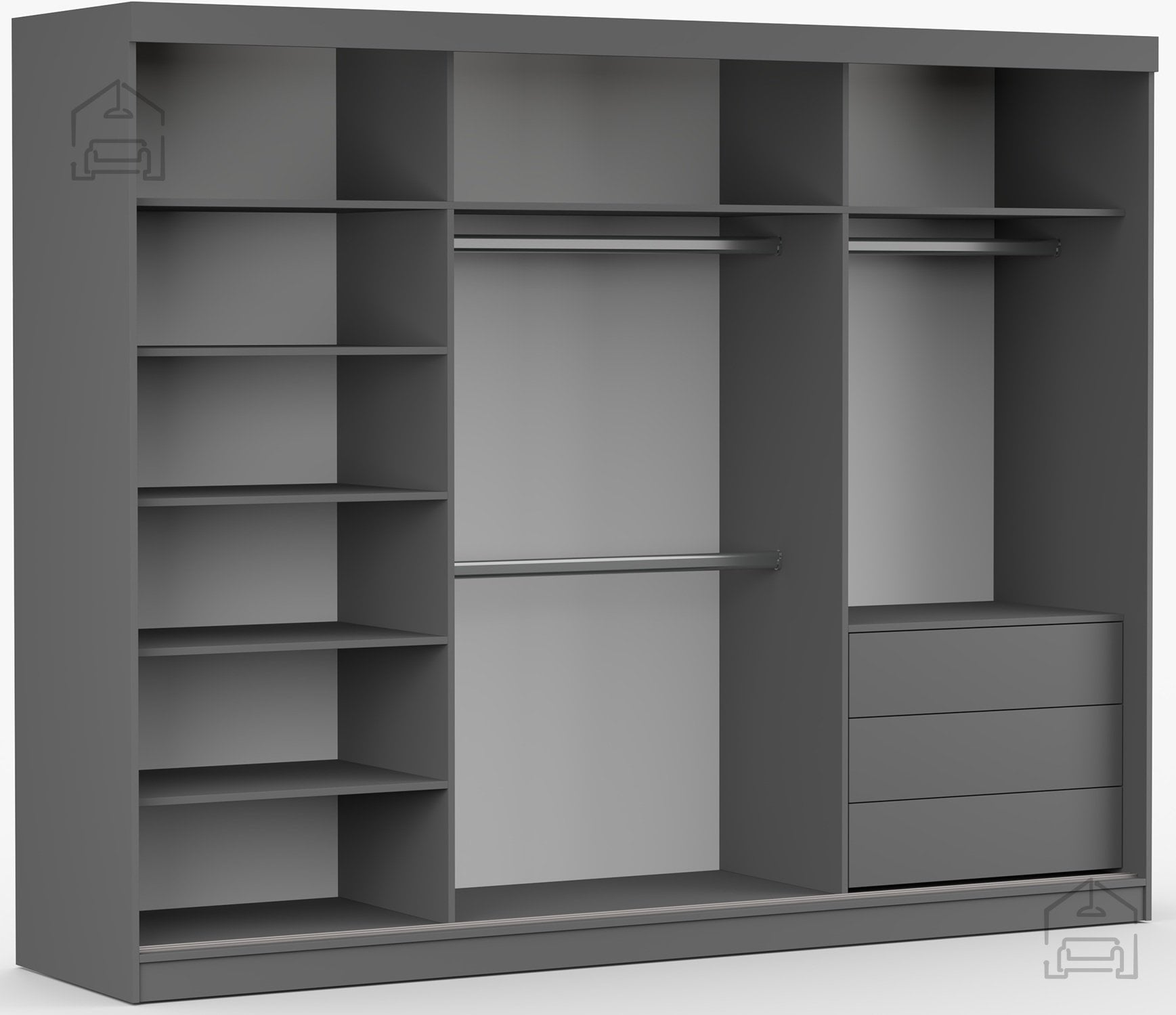 Elegantna in funkcionalna garderobna omara z drsnimi vrati Milan je odlična izbira za vse, ki želijo urediti svoj prostor z občutkom za slog in praktičnost. Izdelana je iz kakovostne laminirane plošče, kar zagotavlja dolgo življenjsko dobo in enostavno vzdrževanje. Omara je v sodobni sivi barvi, ki se lepo ujema z različnimi notranjimi slogi – od minimalističnih do bolj klasičnih. S svojo širino 250 cm, globino 64 cm in višino 215 cm ponuja dovolj prostora za oblačila, obutev in dodatke, ne da bi pri tem zavzela preveč prostora v vaši sobi.