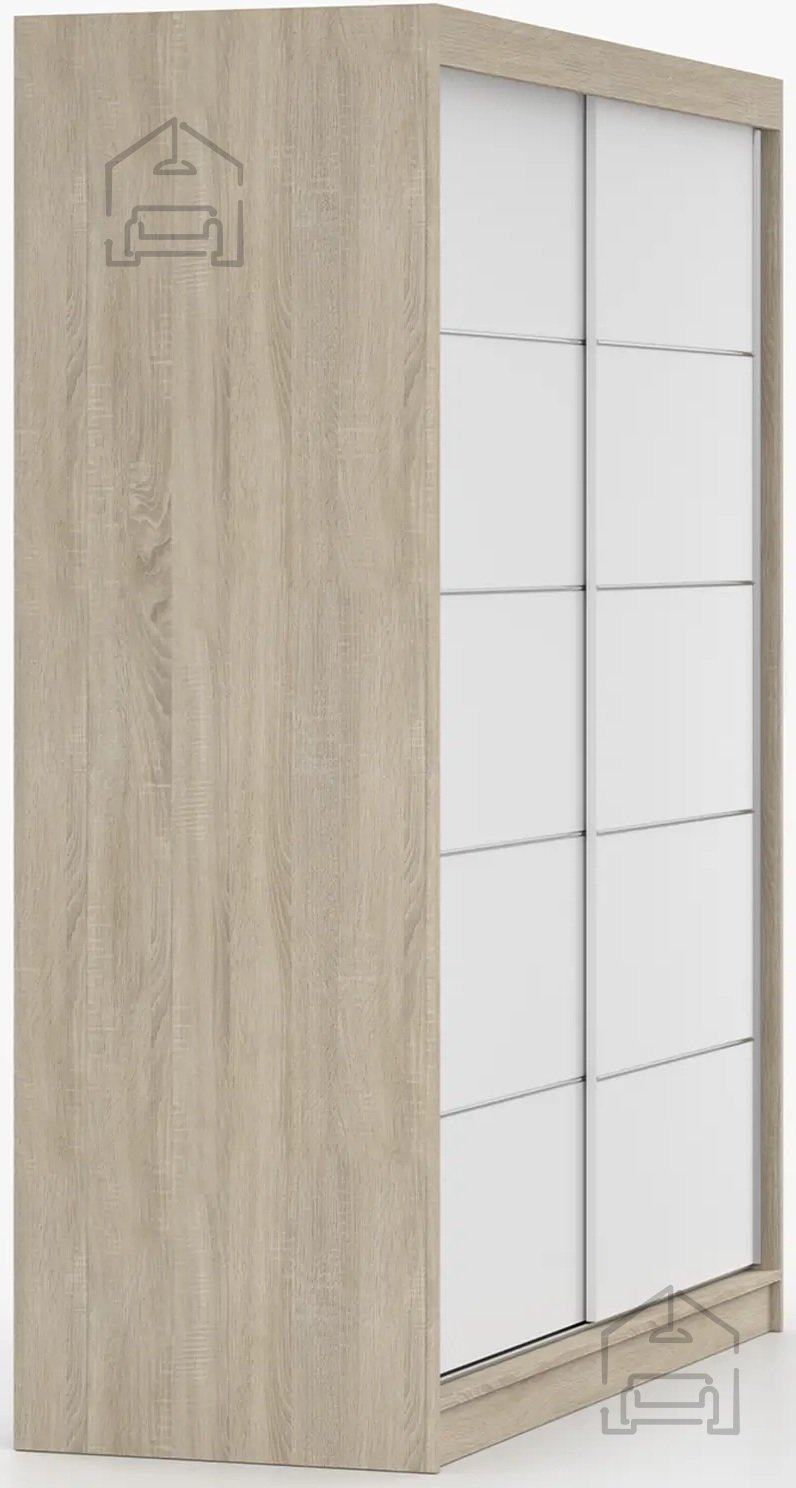 Garderobna omara Bono 06 je zasnovana z mislijo na optimalno organizacijo prostora. Dvojna drsna vrata omogočajo preprost dostop do notranjosti, obenem pa prihranijo prostor, kar je še posebej pomembno v manjših stanovanjih ali sobah z omejenim razpoložljivim prostorom. Notranja razporeditev je premišljena – običajno vključuje obešalni del za oblačila na obešalnikih ter police za zložene kose. Takšna ureditev omogoča preglednost in enostavno shranjevanje različnih vrst garderobe skozi vse letne čase.