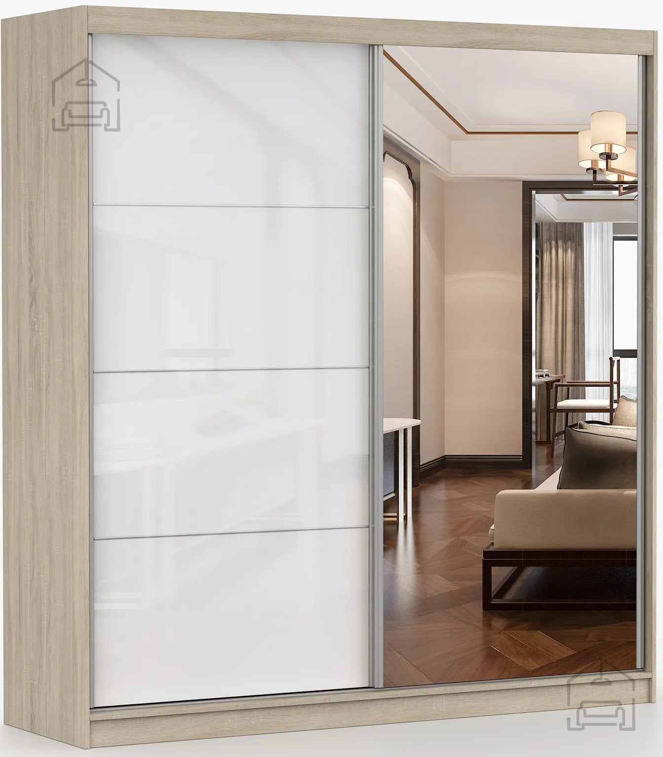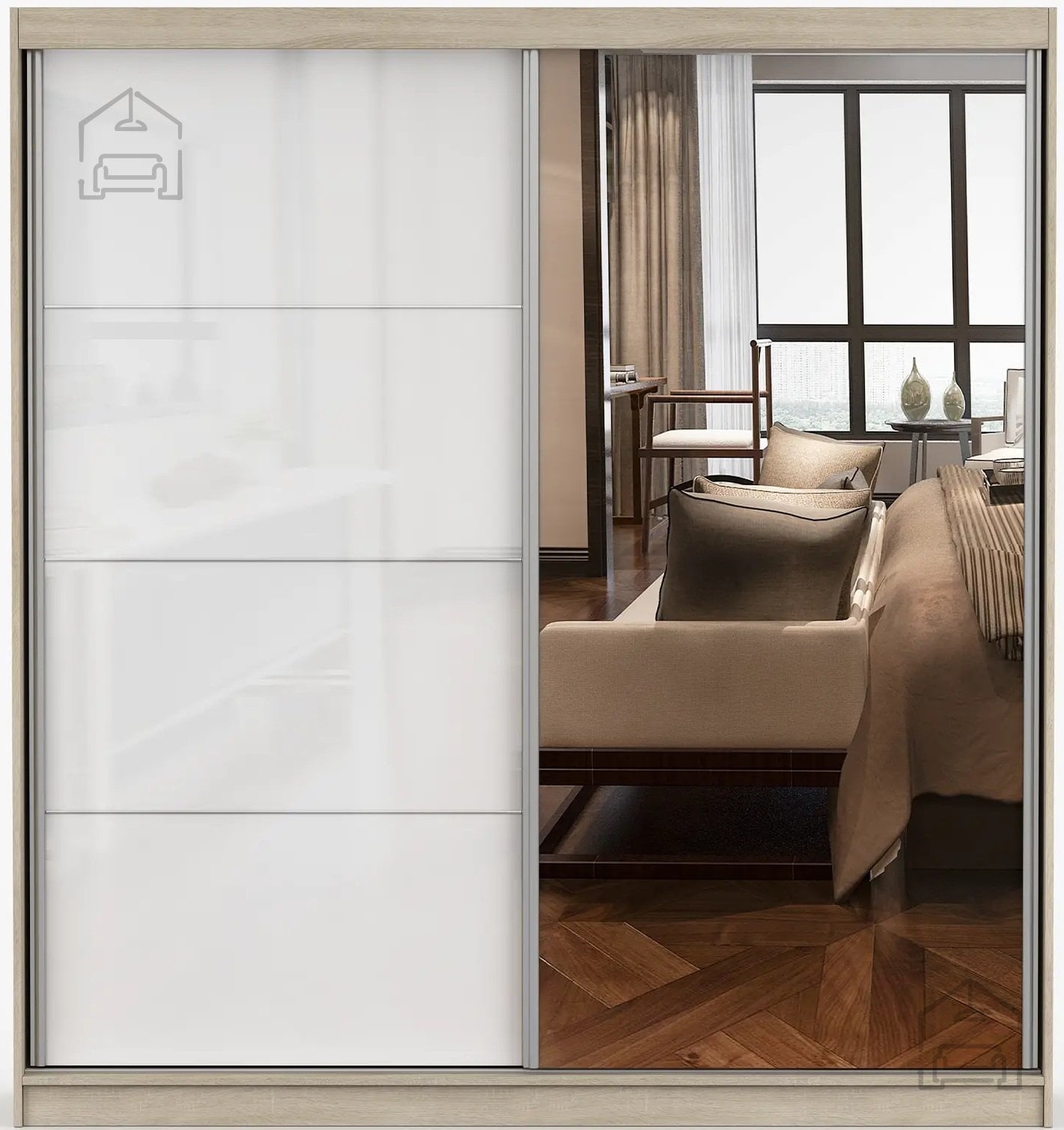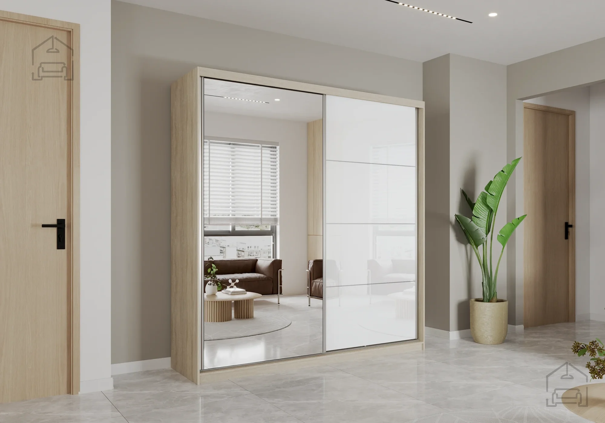 Drsna vrata so ena izmed ključnih prednosti te garderobne omare, saj omogočajo enostaven dostop do notranjosti, ne da bi bila potrebna dodatna površina za odpiranje. To je idealna rešitev za manjše prostore ali tesne prehode, kjer vsaka dodatna centimetra šteje. Mehanizem drsnih vrat deluje gladko in tiho, kar prispeva k udobju uporabe. Poleg tega so vrata zasnovana tako, da se popolnoma prilegajo ohišju, kar preprečuje vdor prahu v notranjost omare.