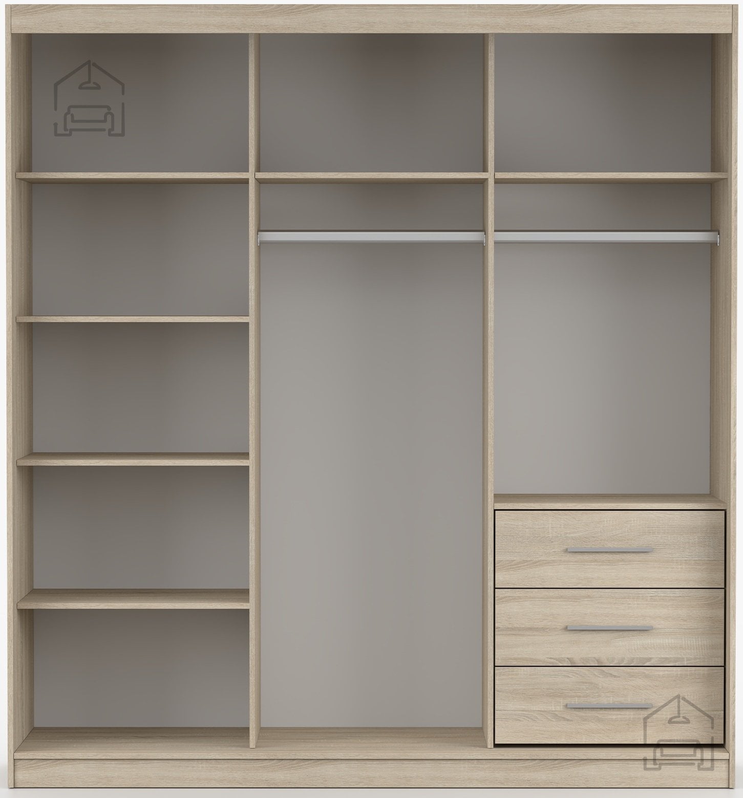 Garderobna omara z drsnimi vrati Pola 35 203 – Idżczak Meble je odlična izbira za vse, ki iščejo kakovostno, prostorno in estetsko dovršeno rešitev za shranjevanje. Njena trpežna konstrukcija, premišljena notranja zasnova in sodobna barvna kombinacija zagotavljajo, da se bo odlično podala v vsak dom ter ostala uporabna in privlačna še vrsto let.