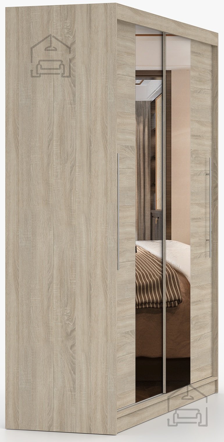 Barva sonoma hrast je med najbolj priljubljenimi v sodobnem pohištvenem oblikovanju, saj združuje toplino naravnega lesa z nevtralnostjo, ki omogoča enostavno kombiniranje z drugimi materiali, kot so bela lakirana površina, siva tekstura betona ali črna kovina. Omara Torino se zato lepo ujema tako z minimalističnimi kot s klasično urejenimi interierji. Ogledalo na vratih ni le praktičen dodatek, temveč tudi estetski element, ki doda pridih prefinjenosti in vizualno razširi prostor.