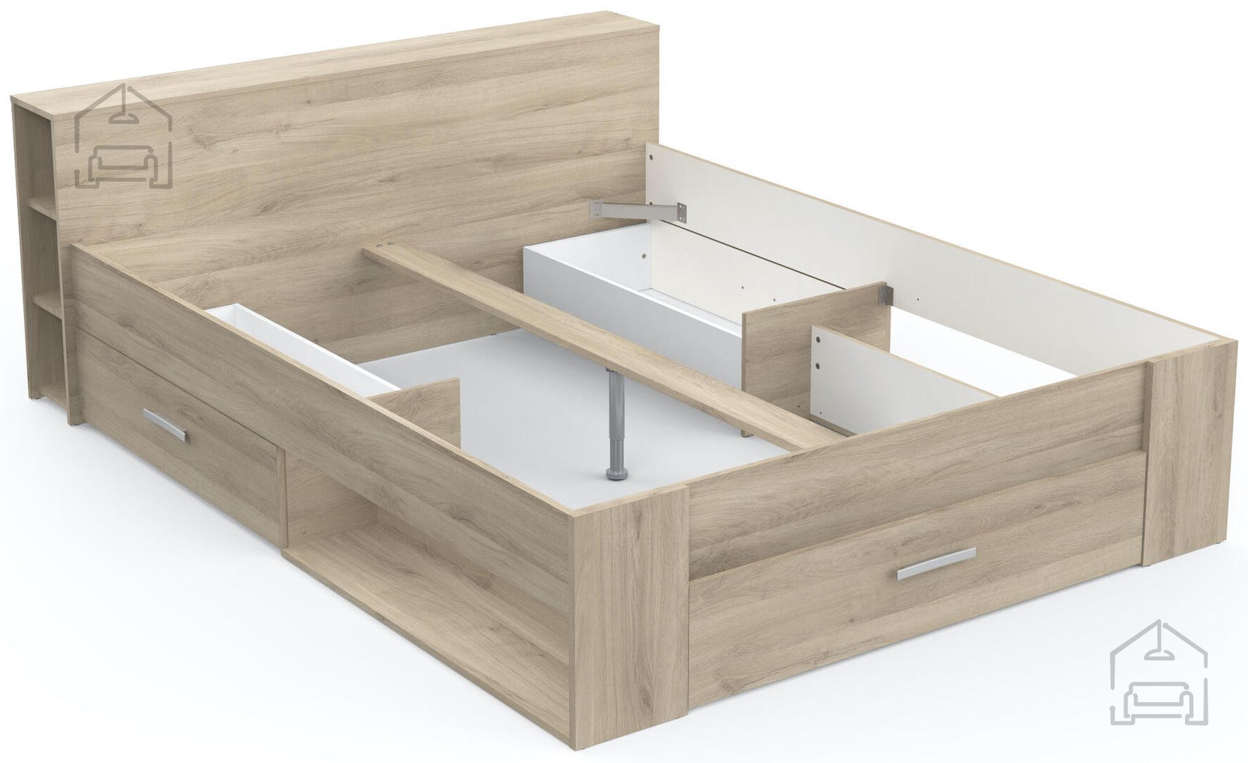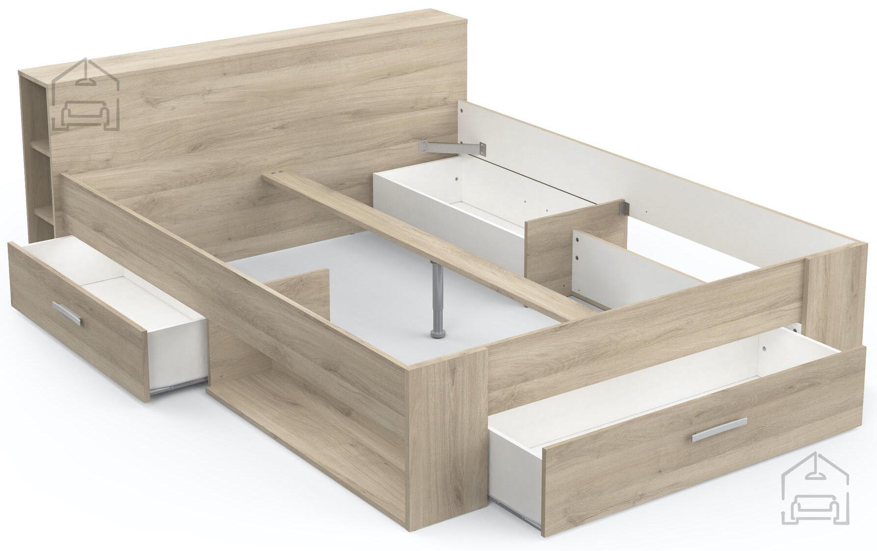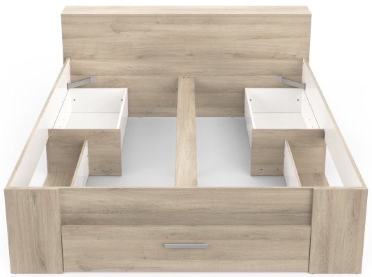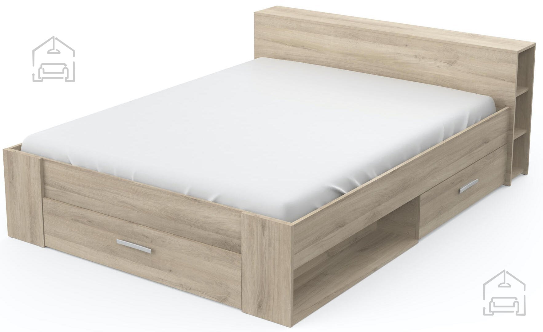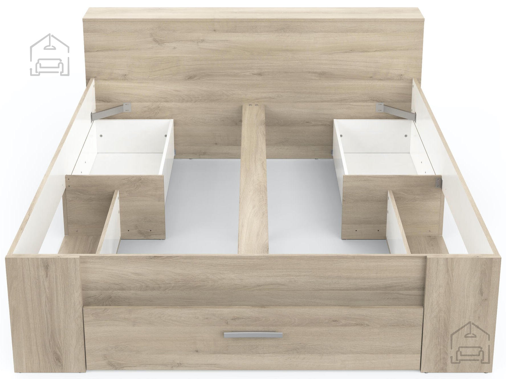 Postelja je v celoti izdelana iz iverala, kar pomeni, da je lažja od masivnega lesa, a še vedno dovolj trdna za vsakodnevno uporabo. Površina je odporna proti praskam in enostavna za čiščenje, zato bo dolgo ohranila svoj privlačen videz. Iveral v barvi kronberškega hrasta natančno posnema naravno teksturo lesa in prostoru doda toplino brez potrebe po posebnem vzdrževanju.