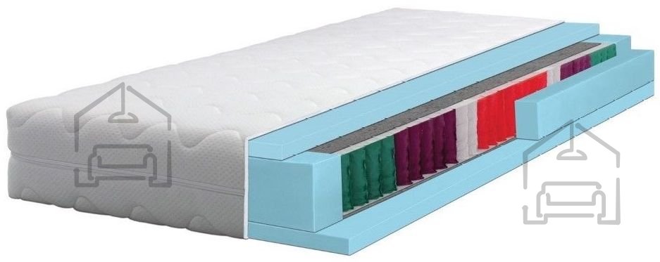 Jedro vzmetnice sestavljajo kakovostne žepkaste vzmeti višine 16 cm. Zaradi neodvisnega delovanja vsake vzmeti se gibanje enega spalca ne prenaša na drugega, kar je posebej pomembno pri zakonskih dimenzijah 180x200 cm. Obe strani vzmetnice sta obloženi z 2,5 cm plastjo poliuretanske pene SKY CELL, ki izboljša elastičnost in občutek mehkobe. Pena skrbi za enakomerno porazdelitev pritiska in dodatno blaži točkovne obremenitve.