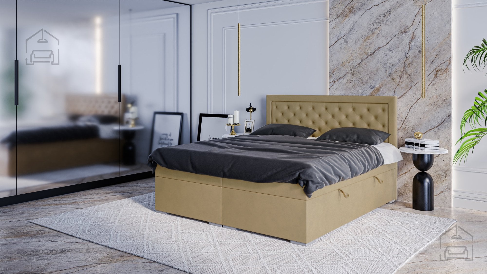 Ko si zaželite popolne kombinacije udobja, estetike in funkcionalnosti, je boxspring postelja Glamour 160x200 cm prava izbira. Ta model proizvajalca Laverto iz Poljske prinaša prefinjen videz in kakovostno izdelavo, ki se odraža v vsakem detajlu – od natančno zašitih linij na vzglavju do premišljene sestave ležišča. S svojim sodobnim, a hkrati klasično elegantnim dizajnom se postelja odlično poda v različne stile spalnic, od minimalističnih do tradicionalnih.
