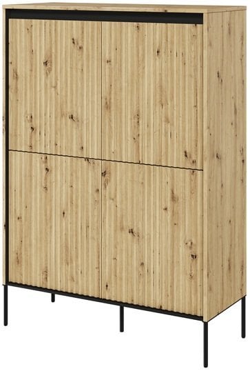 Ena najpomembnejših lastnosti velikega predalnika je njegova vsestranskost. Različne barve pohištva so primerne za različne notranje stile, od modernega do klasičnega ali skandinavskega. Komoda se bo odlično podala v vsak prostor in ji dodala svetlost, lahkotnost in eleganco. Ne glede na to, ali opremljate spalnico, dnevno sobo ali predsobo, bo takšna komoda eleganten in praktičen dodatek. Veliko komodo podpirajo kontrastne črne kovinske noge, vse to pa dopolnjuje subtilna osvetlitev fasad.
