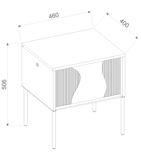 Dimenzije izdelka so 46x40x51 cm, kar omogoča optimalno razmerje med prostornostjo in kompaktnostjo. Omarica je dovolj visoka, da jo lahko postavite ob večino standardnih postelj, in dovolj široka, da na zgornjo površino postavite nočno svetilko, knjigo ali kozarec vode. Notranji prostor pa je primeren za shranjevanje drobnih predmetov, ki jih želite imeti vedno pri roki.
