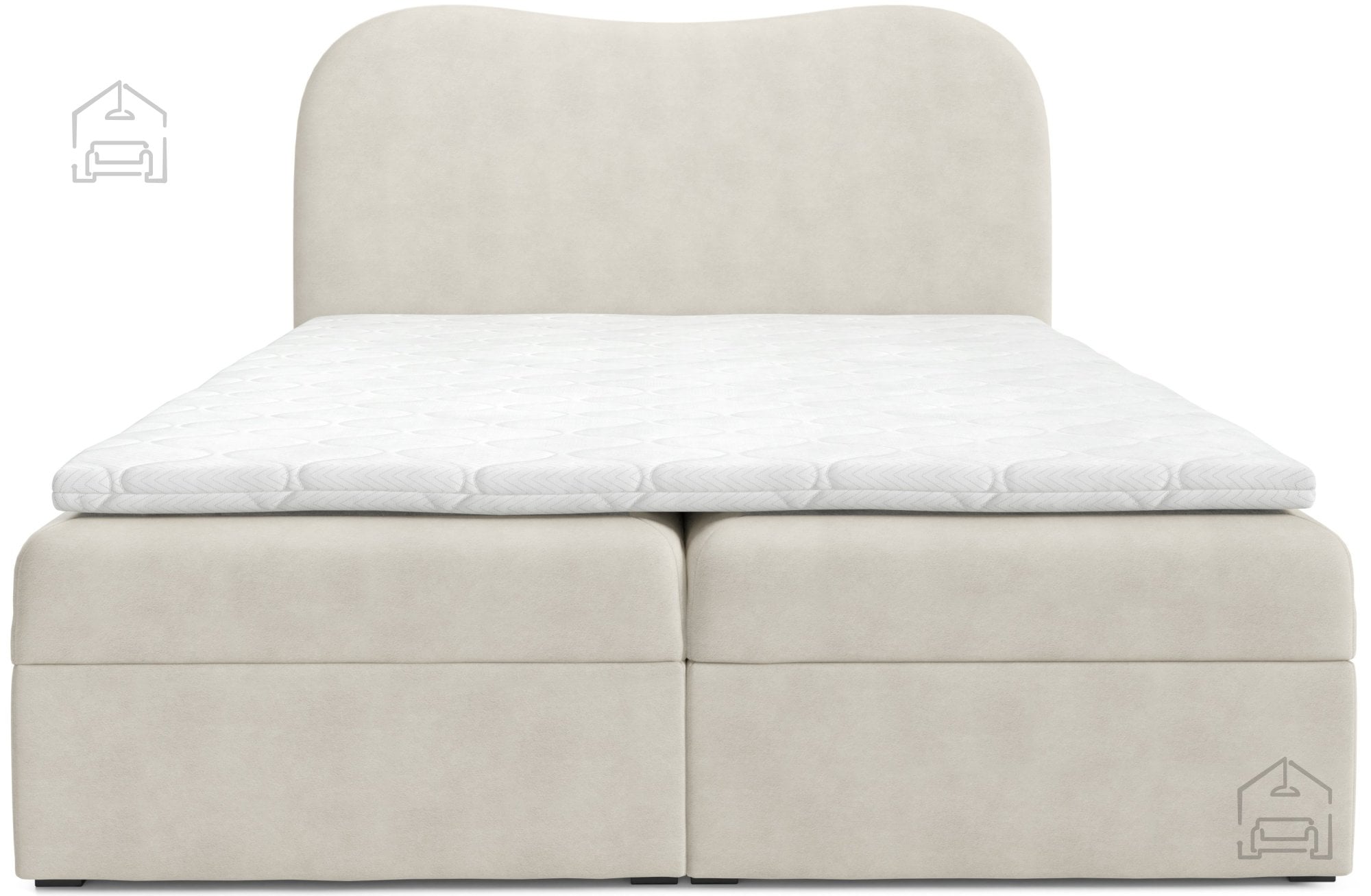 Osnova postelje je izdelana iz trpežnega iverala, ki zagotavlja stabilnost in dolgo življenjsko dobo. Vsi vidni deli so tapecirani v kakovostno tkanino, kar daje postelji prijeten, mehak videz in občutek. Na fotografiji je prikazana tkanina Gerra 80, ki se ponaša z nežno teksturo in obstojnostjo barv. Ležalni del sestavlja kombinacija vzmetnice tipa bonell in topperja iz pene T-25 višine 4 cm, kar skupaj ustvarja optimalno udobje za spanje in razbremeni telo med počitkom.