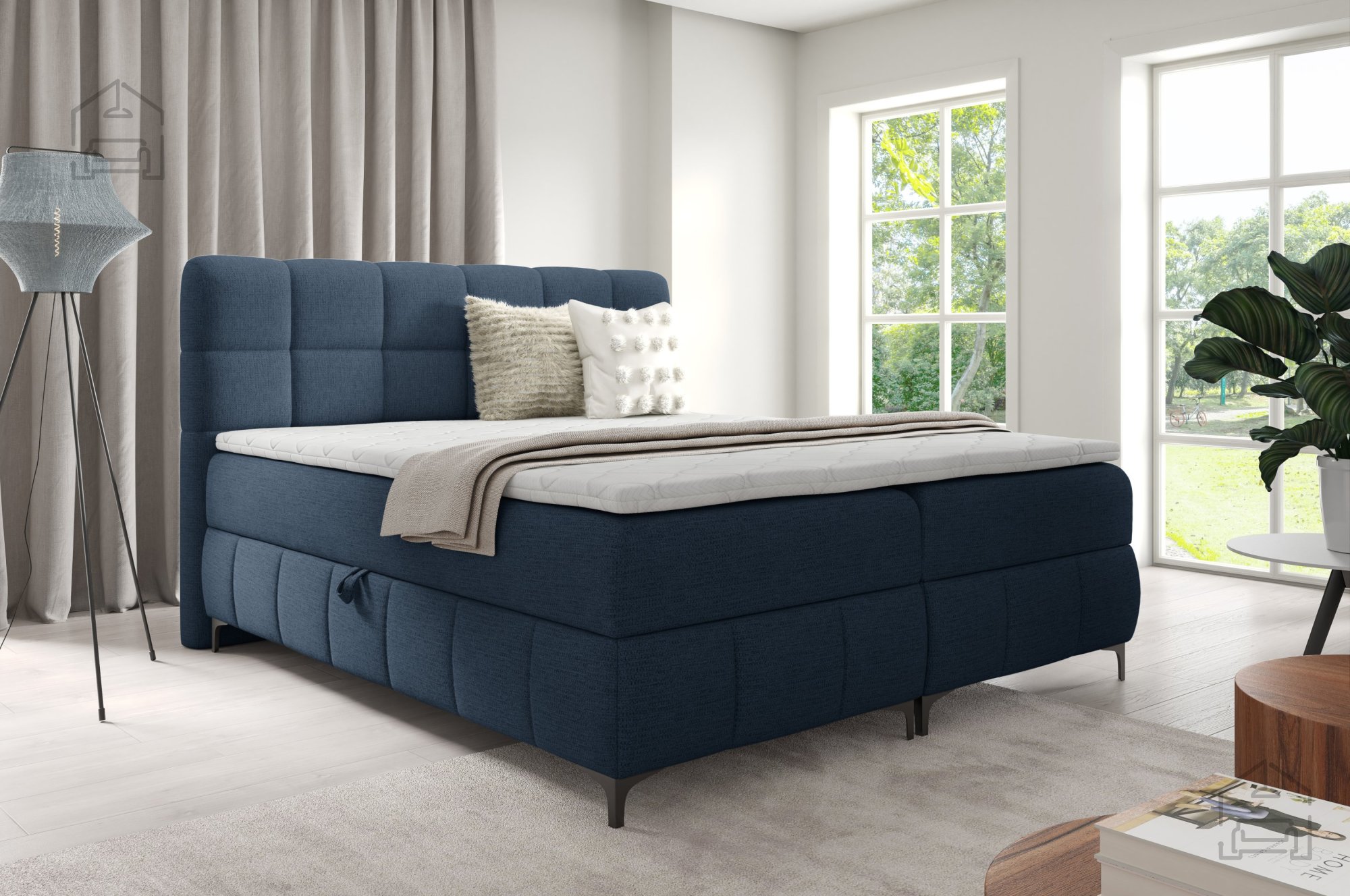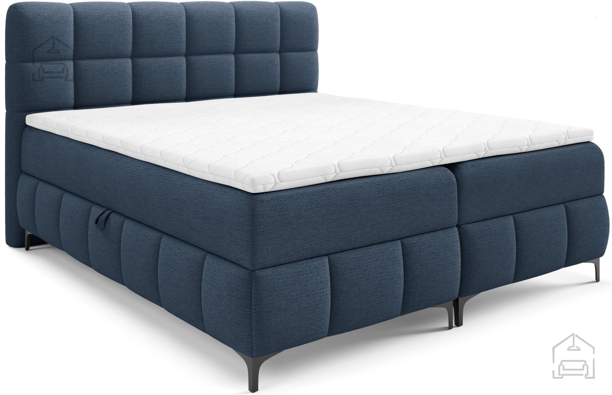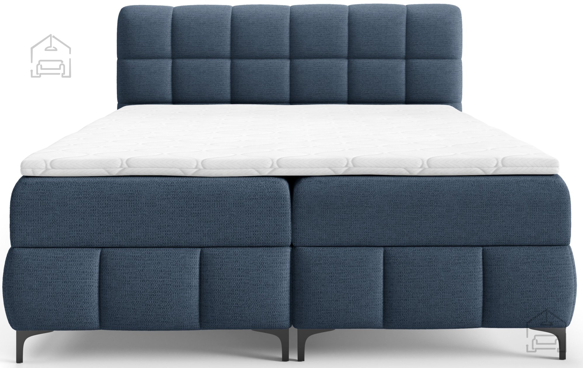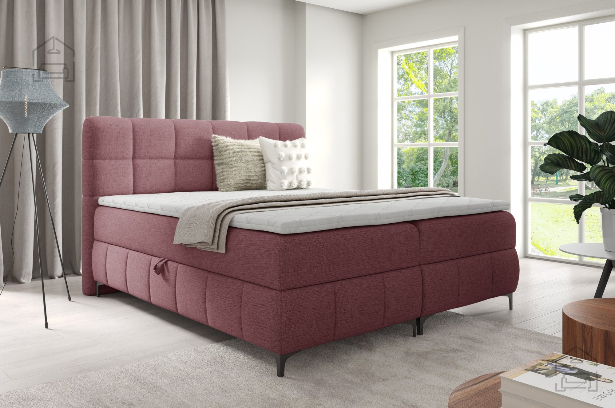 Boxspring postelja Sophie je na voljo v več barvah, kar omogoča, da jo enostavno uskladite z obstoječim pohištvom in dekorjem v spalnici. Kovinske črne nogice dvigujejo konstrukcijo nad tlemi, kar olajša čiščenje in daje postelji vizualno lahkotnost. Dekorativni šivi na vzglavju in stranicah poudarjajo kakovost izdelave ter dodajo občutek elegance.