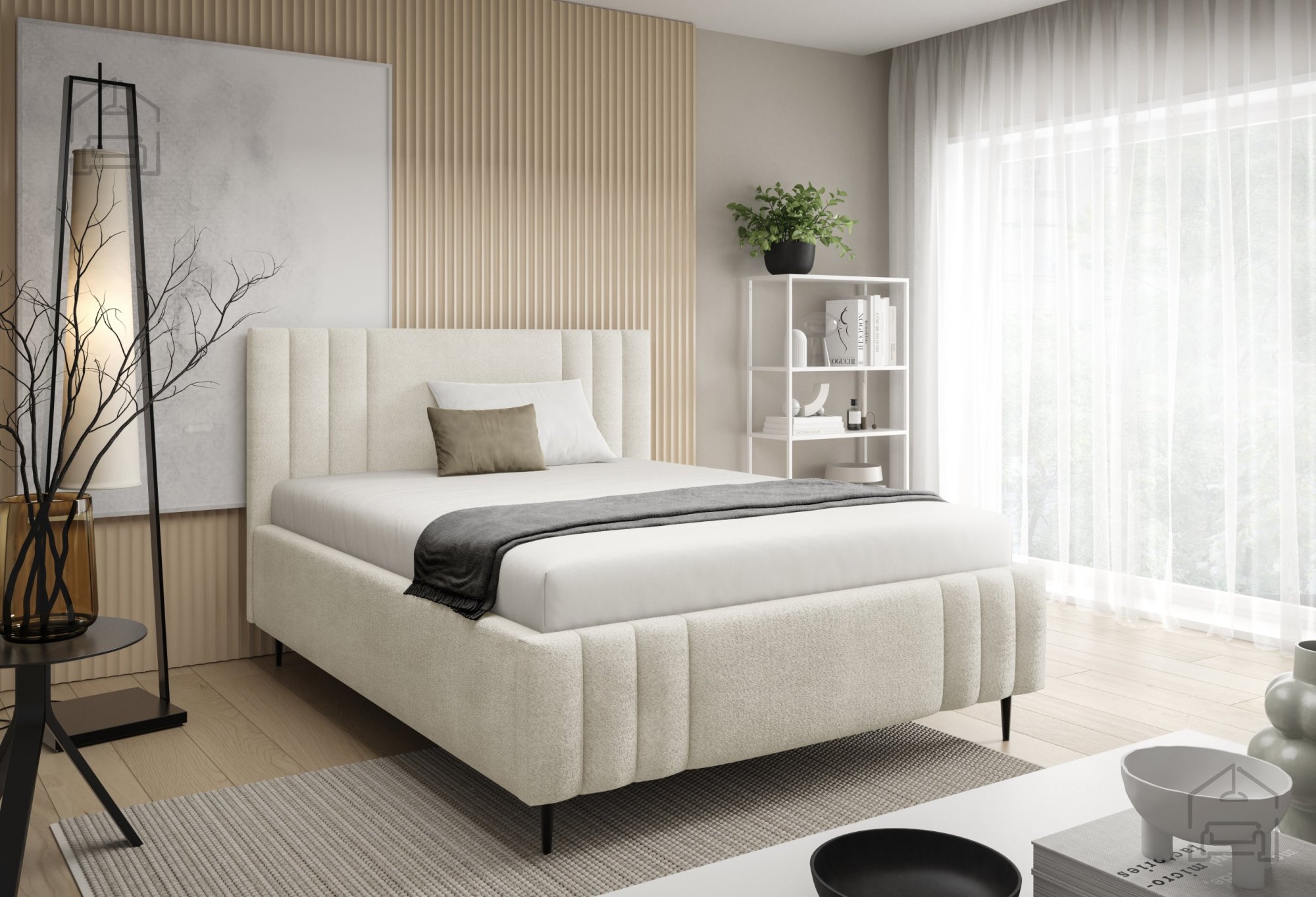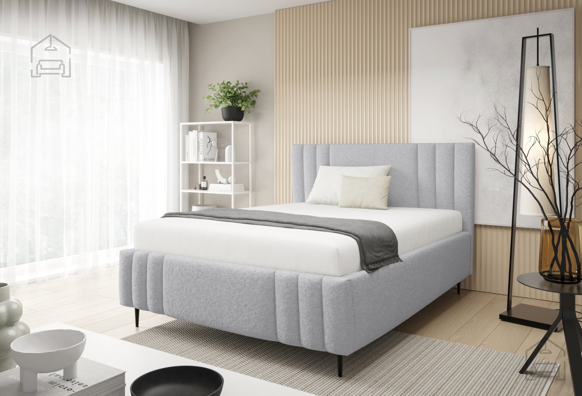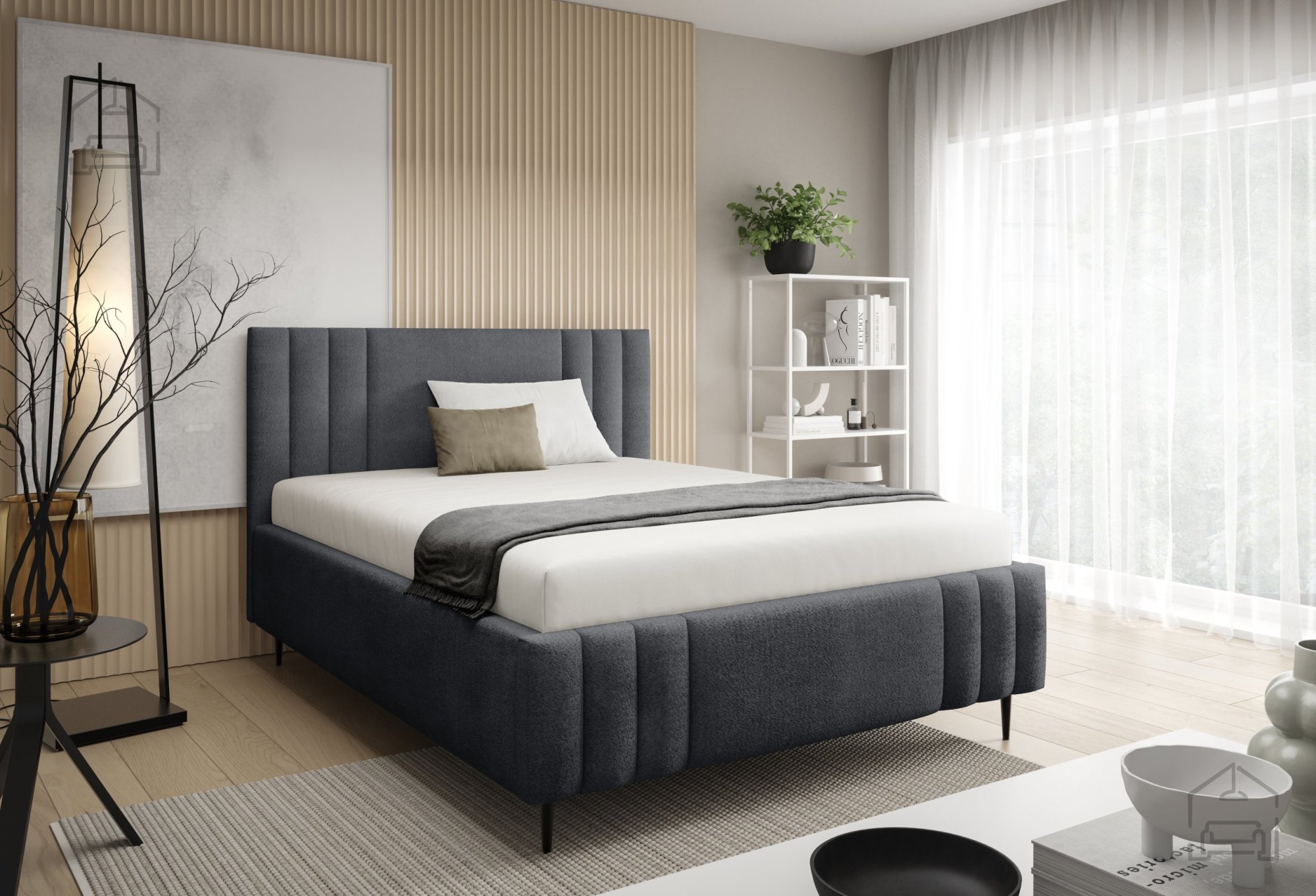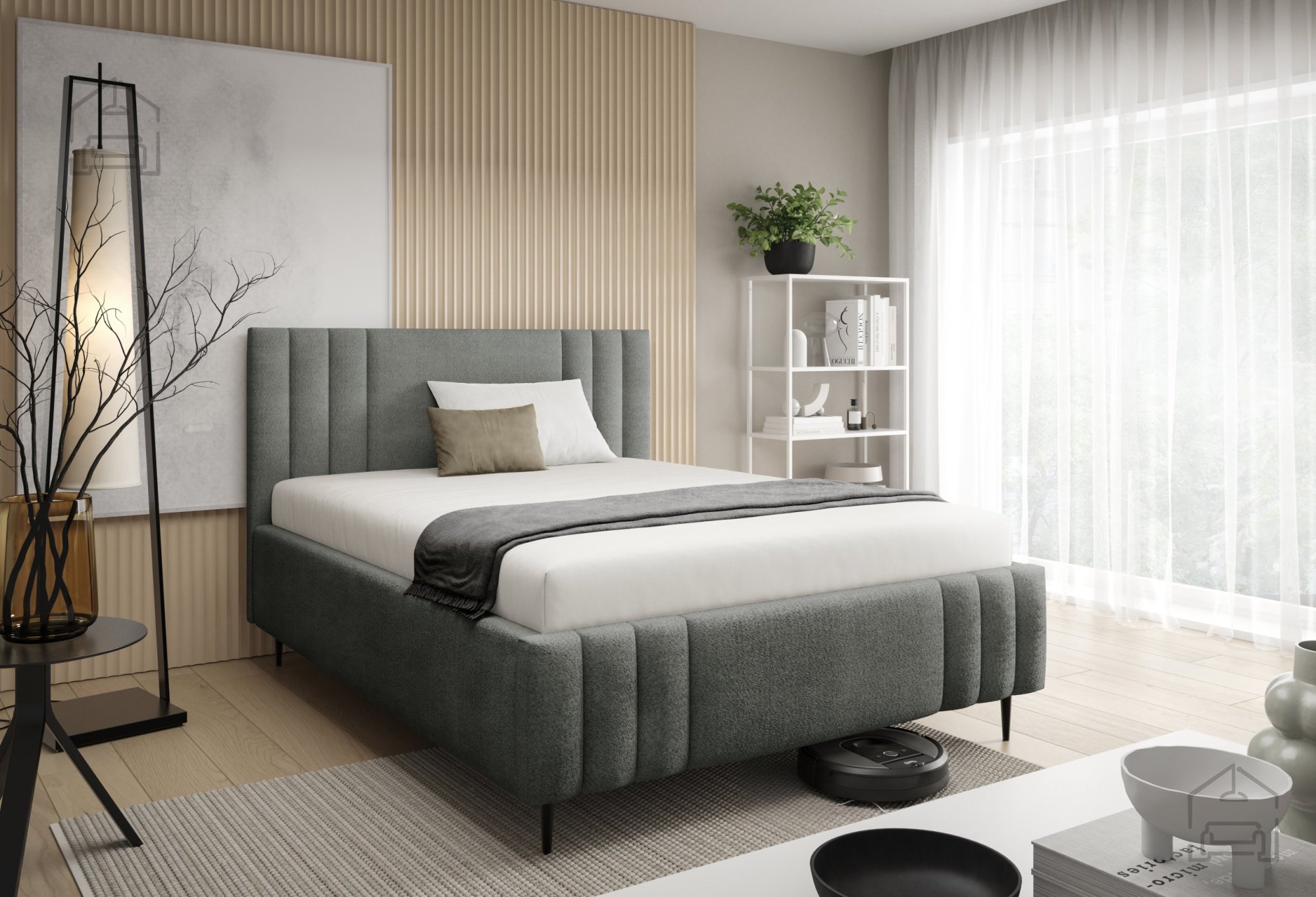 Postelja Ribo z nogicami – Meble Gruška se odlično ujema z različnimi vrstami ležišč standardnih dimenzij. Ker je na voljo brez vzmetnice, si lahko uporabnik sam izbere tip ležišča, ki mu najbolj ustreza – bodisi klasično vzmetnico bodisi sodoben hibridni model. Zaradi tapeciranega okvirja postelja ne zahteva dodatnega vzglavja, saj že sama po sebi nudi udobno naslonjalo za branje ali gledanje televizije.