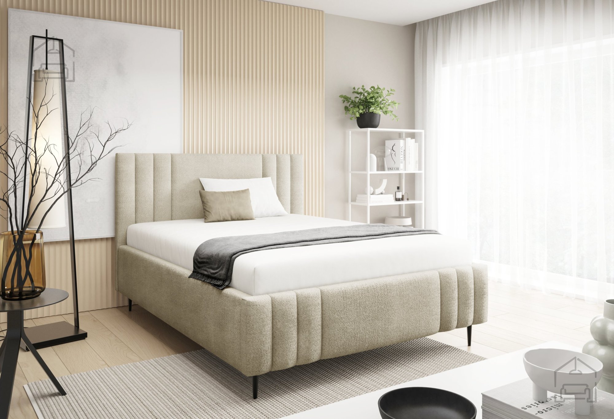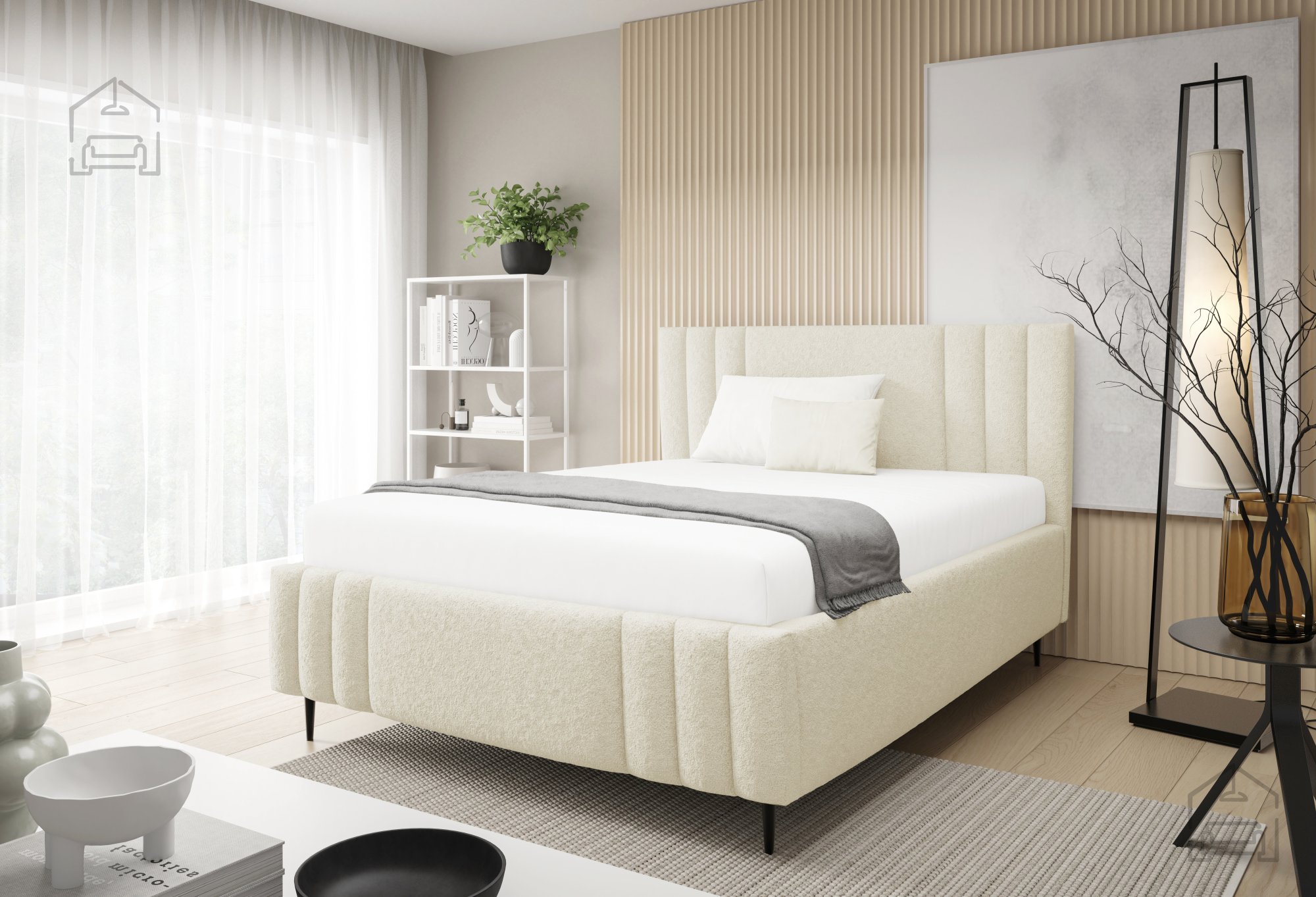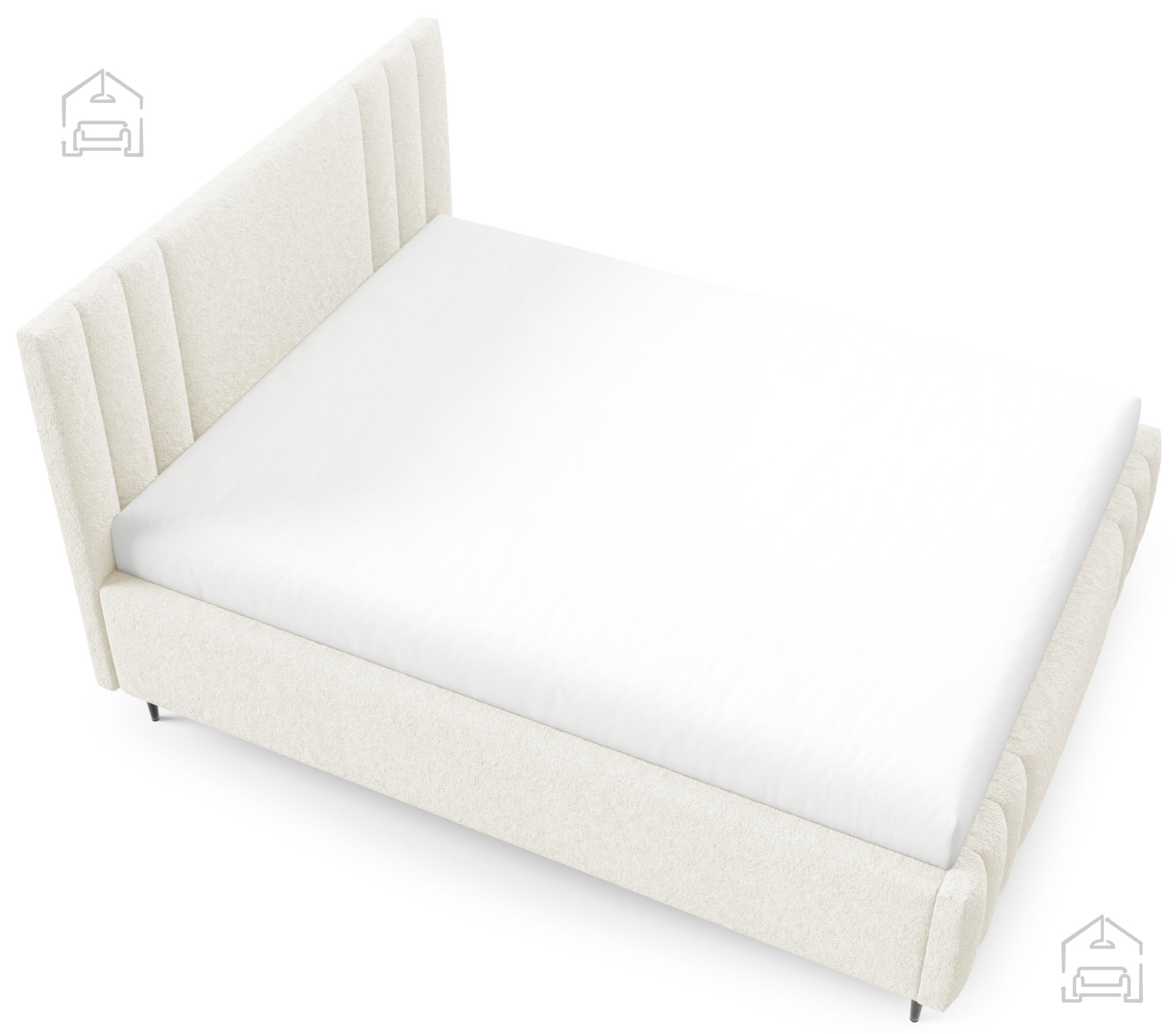 Postelja Ribo z nogicami – Meble Gruška se odlično ujema z različnimi vrstami ležišč standardnih dimenzij. Ker je na voljo brez vzmetnice, si lahko uporabnik sam izbere tip ležišča, ki mu najbolj ustreza – bodisi klasično vzmetnico bodisi sodoben hibridni model. Zaradi tapeciranega okvirja postelja ne zahteva dodatnega vzglavja, saj že sama po sebi nudi udobno naslonjalo za branje ali gledanje televizije.