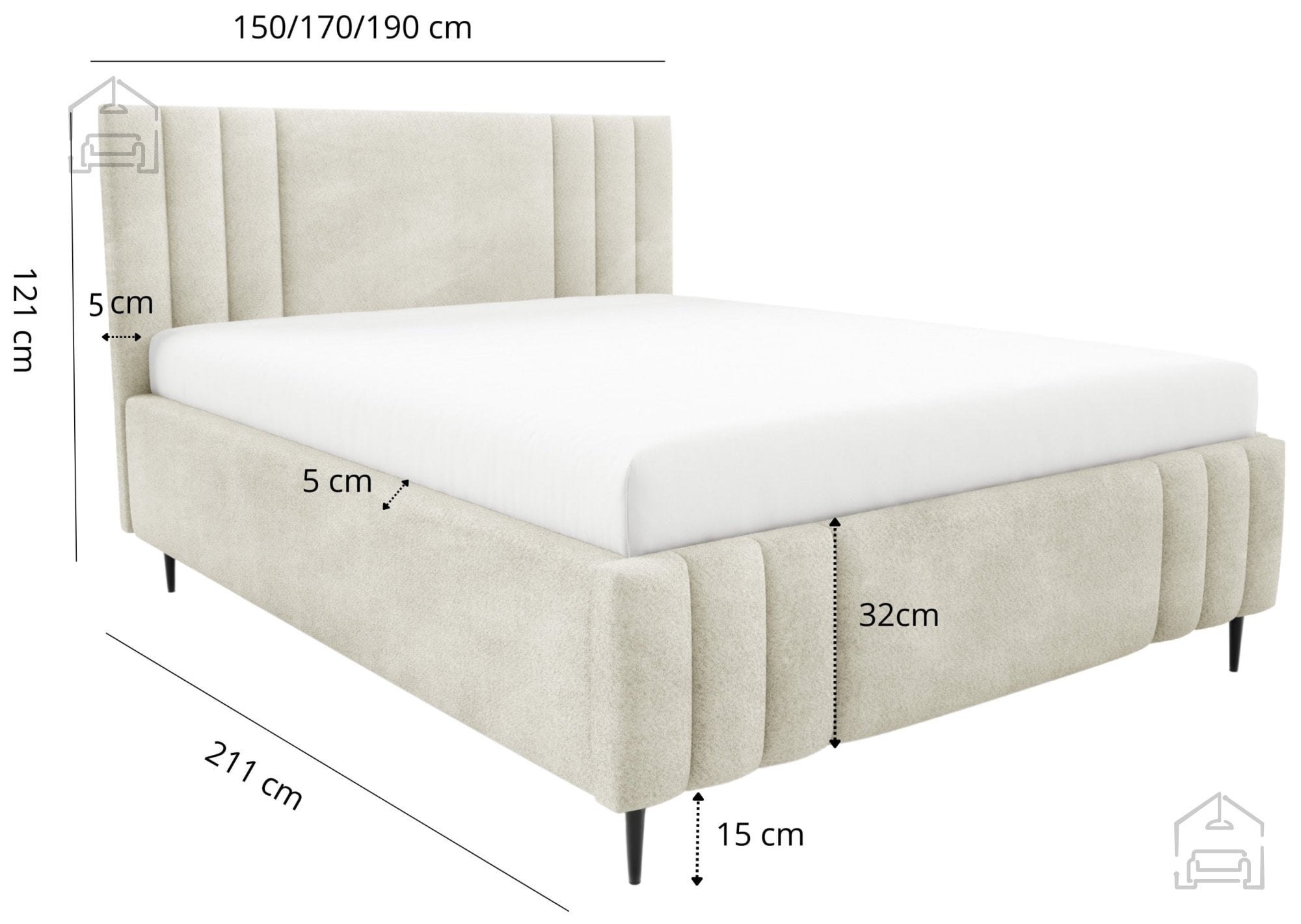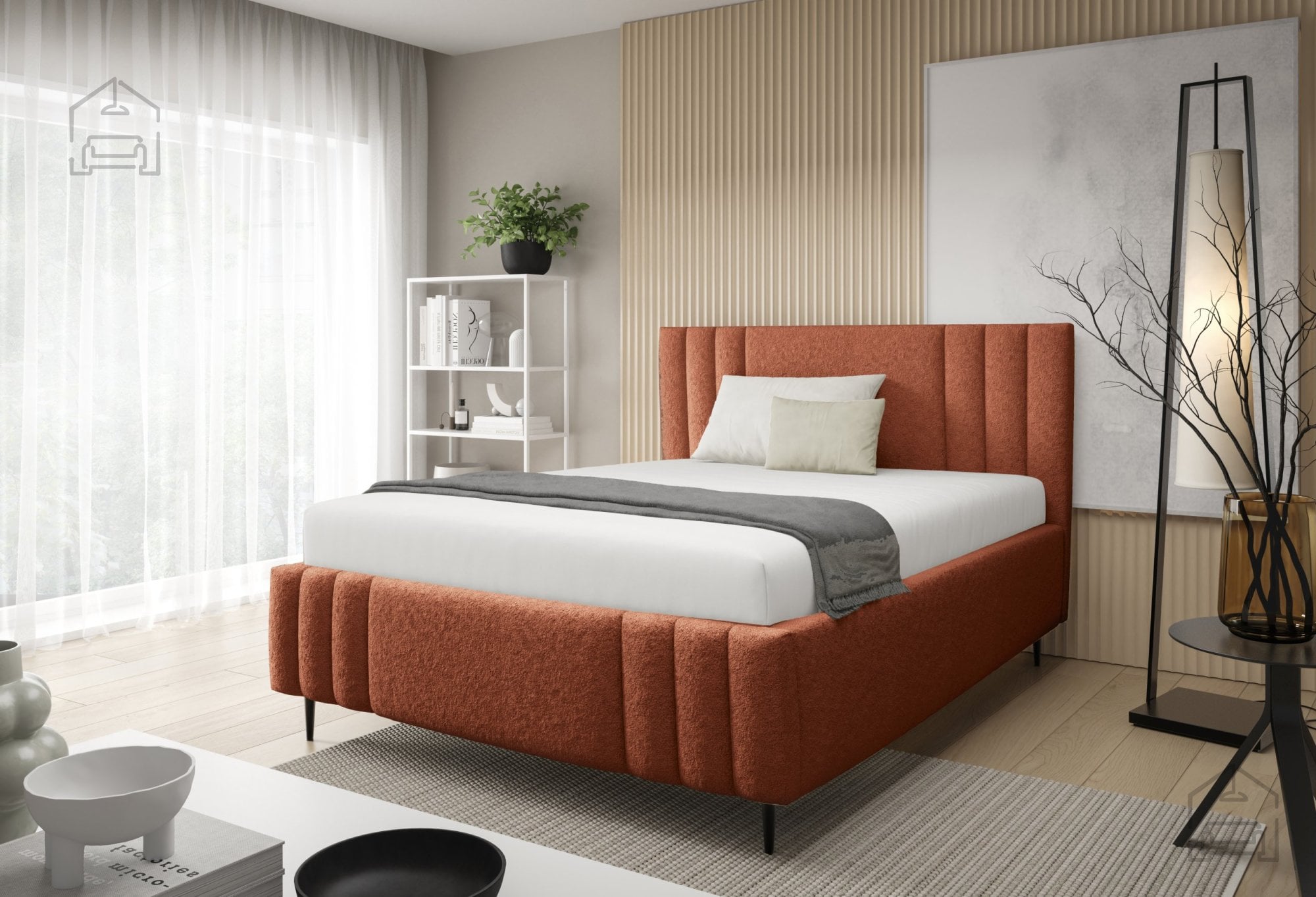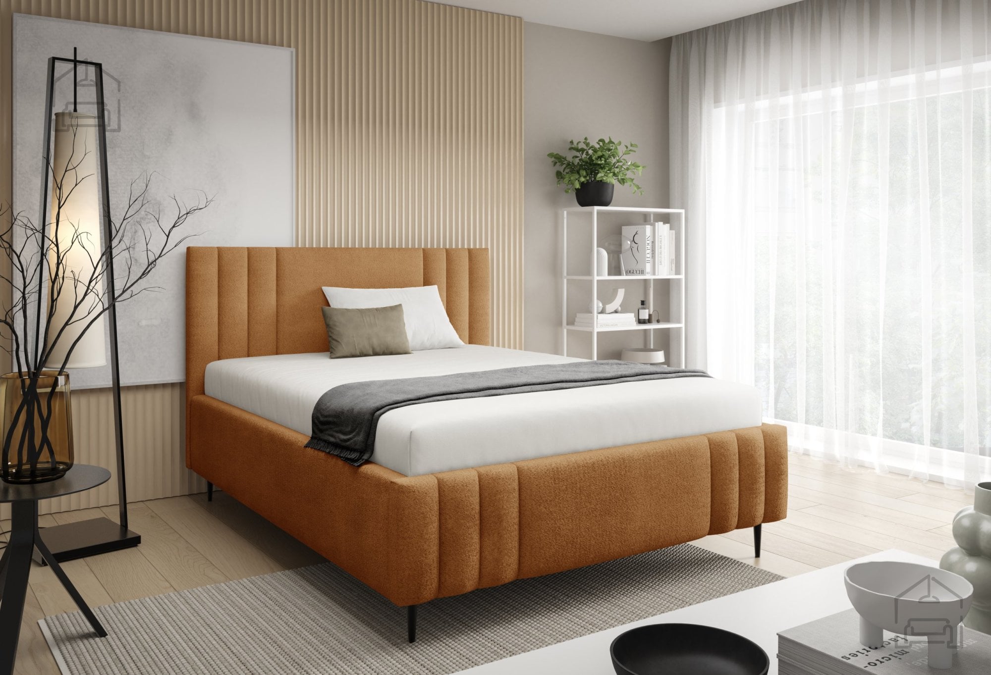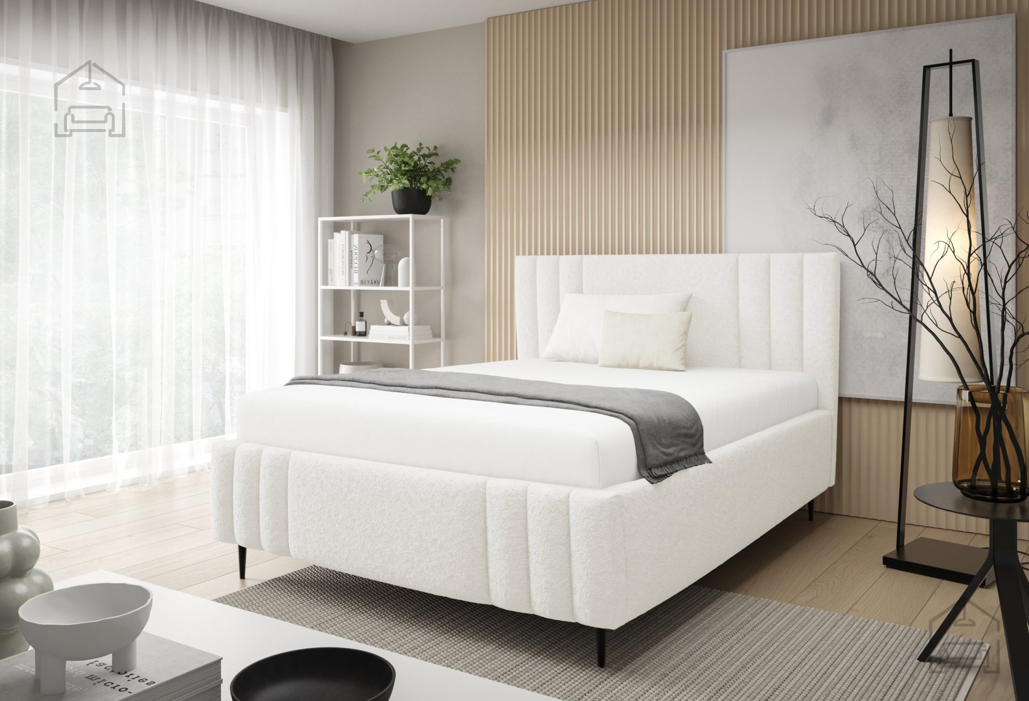 Postelja Ribo z nogicami – Meble Gruška se odlično ujema z različnimi vrstami ležišč standardnih dimenzij. Ker je na voljo brez vzmetnice, si lahko uporabnik sam izbere tip ležišča, ki mu najbolj ustreza – bodisi klasično vzmetnico bodisi sodoben hibridni model. Zaradi tapeciranega okvirja postelja ne zahteva dodatnega vzglavja, saj že sama po sebi nudi udobno naslonjalo za branje ali gledanje televizije.